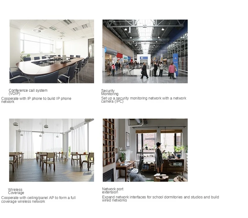 16 портов 10 / 100 / 1000BASE-T RJ45 поддерживают Poe + источник питания, удовлетворяя требованиям источника питания Poe в мониторинге безопасности, системе телеконференции, беспроводном покрытии и других сценах.