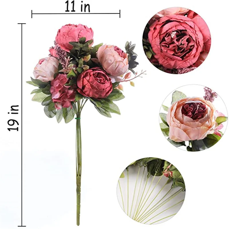 Большой цветок и зеленый листья, как настоящий пион, осветляют ваш дом, могут оставаться свежими навсегда.