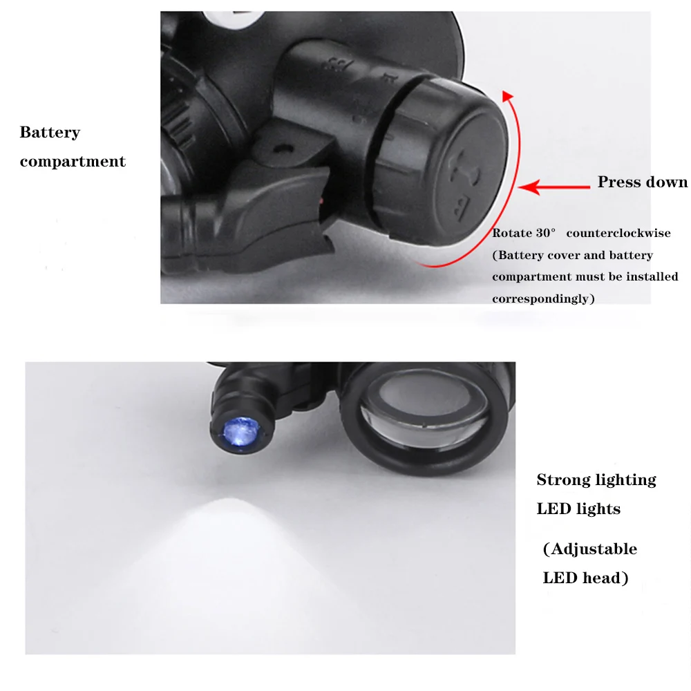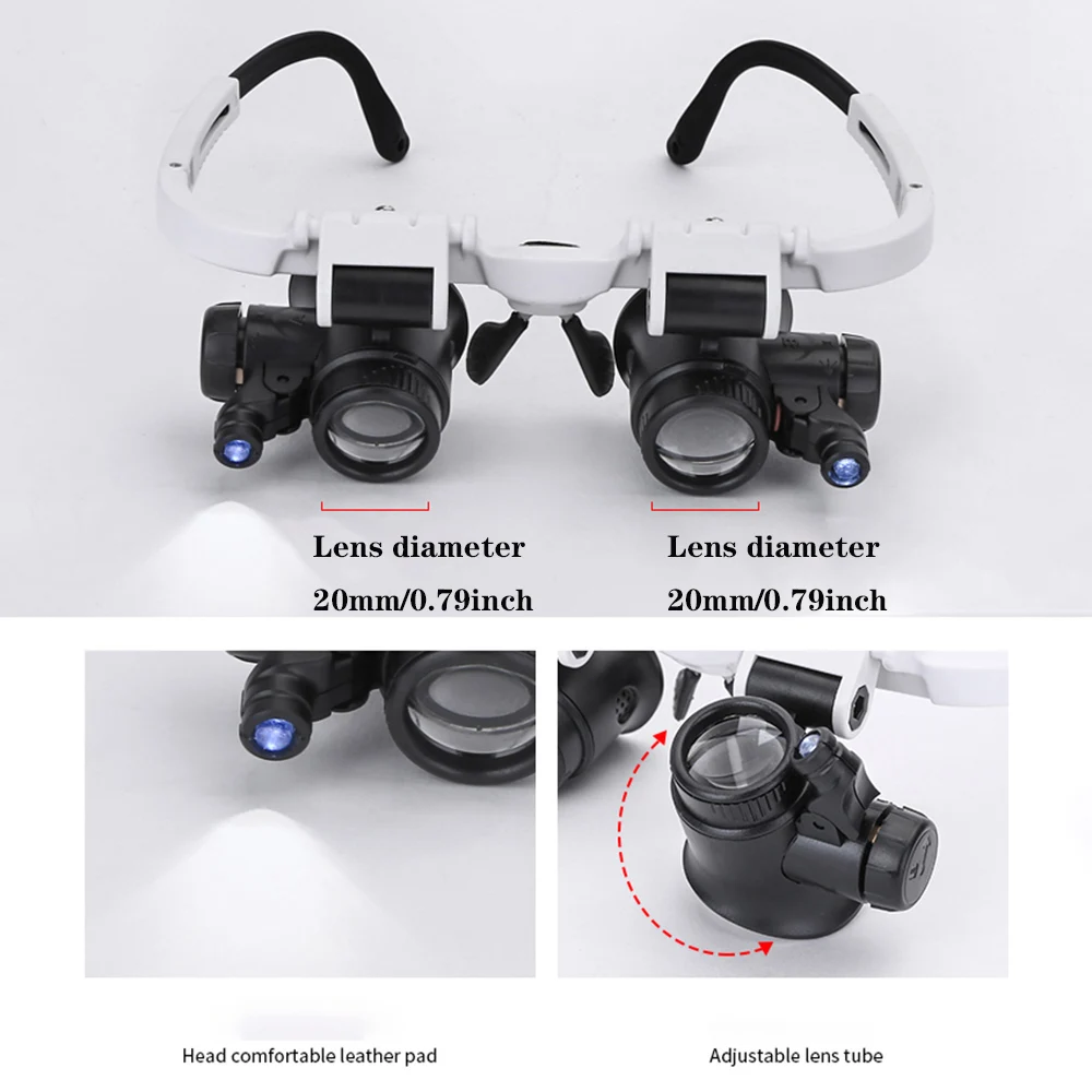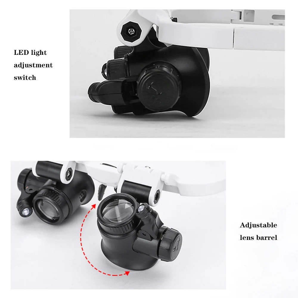 Широкое применение: Лупа для оголовья хорошо подходит для ремонта часов, мобильный телефон ремонта, оценки ювелирных изделий, оценки старины, просмотра дизайнерских чертежей, полевых исследований и т. д.