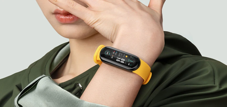 Mi Band 6 с Полноразмерным экраном 1,56 amoled-дисплеем, область отображения улучшена. Показать больше информации о вашем сообщении, входящем звонке и уведомлениях.