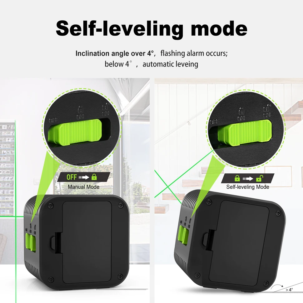 3. Зафиксируйте маятник и сдвиньте кнопку посередине, затем открывается режим наклона. Лазерные линии заблокированы.