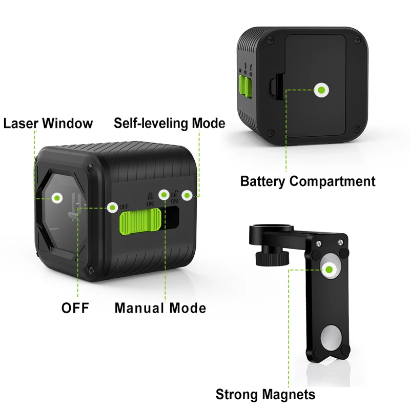 Сильные магниты с резьбой штатива могут легко прикрепить лазер к любой стали, поворачивая вокруг 360 градусов, как вам нравится.