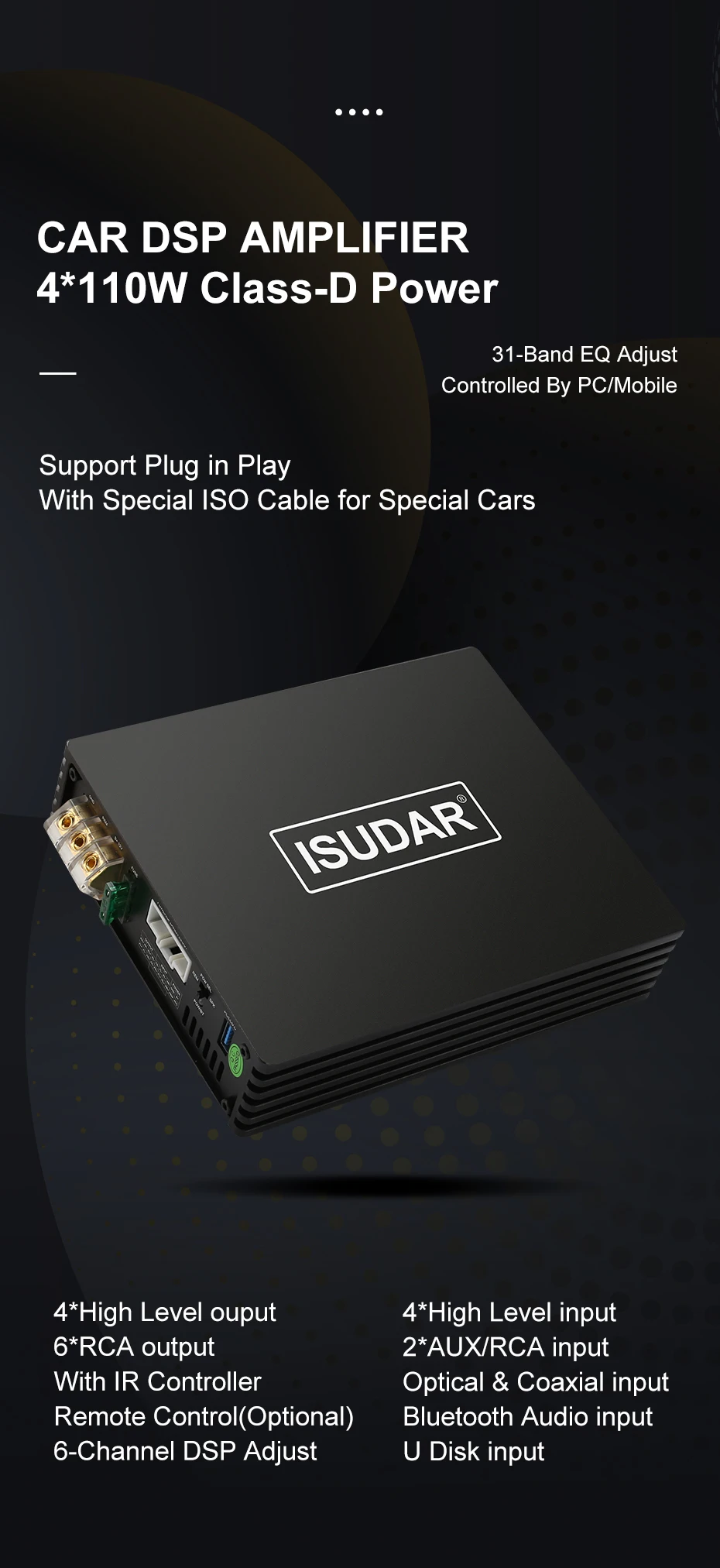 Отличается от традиционных усилителей, усилитель DSP не просто может усиливать звуковой сигнал, и он может поддерживать визуальную регулировку, становясь более умным. Без сложных традиционных ручек, каждый драйвер с DSP усилителем может быть профессиональным тюнером, чтобы наслаждаться самым желаемым слуховым праздником в любое время и в любом месте.