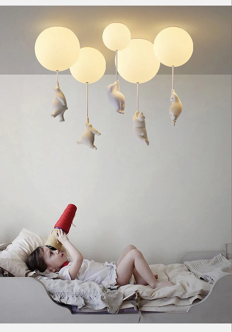 На самом деле, маленький медведь в истории вырос среди старших детей, которые присоединились к армии. Сначала они распределили счастье Wojtek и постепенно стали надежными партнерами. Рост ребенка не может быть отделен от компании его родителей. Из-за влияния окружающей среды он стал смелым, оптимистичным, дружелюбным, И т. Д. Индивидуальность. Лампы и фонари также играют важную роль в украшении пространства, и огни мягко и равномерно разбрызгиваются в комнате. Пусть медведь воздушный шар, потолочный светильник, спокойно сопровождать детей.