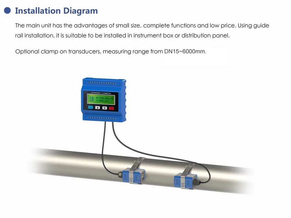Основные характеристики:1. Высокая точностьЛинейность: лучше 0.5%, Повторяемость: лучше 0.2%, точность: лучше 1%2. Широкий диапазон измеренияНесколько типов преобразователей на выбор, размер трубы от dn15 мм до dn6000мм3. Дальнее расстояние передачиСоединительный Модуль и дополнительный измеритель через интерфейс RS-485, расстояние передачи до 1000 м4. Мощные функцииВыходной ток: 4-20 мА, один канал, используется для потока/теплопередатчик;Выход Окт: два канала, переключатель потока/тепла используется для;Входной ток: 4-20 мА, три канала, используется для сборщик данных;Входной сигнал с трехпроводным сопротивлением (PT100): два канала, используется для калориметр.5. Широкое применениеЕго уникальные особенности, особенно низкая стоимость, небольшой размер, высокая производительность, локальный дисплей, делают его идеальным выбором для промышленной автоматизации, управления обработкой, сети расходомера, составления многоканального, высокоточного расходомера.