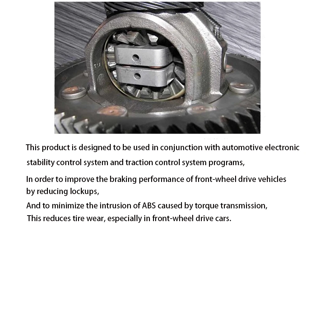 После установки драйверы заметят мгновенную разницу, например ограниченную разницу скольжения (LSD), которая автоматически передает крутящий момент через крутящий момент оси с максимальным захватом. Значительно уменьшает нежелательное вращение колеса и проскальзывание, что приводит к меньшему падению для передних приводных машин. На передних приводных автомобилях Противоскользящий дифференциал также обеспечивает значительные преимущества во время сильного торможения. В этот чехол, присущая передачи крутящего момента характеристики ЛСД играют важную роль. Обратная передача крутящего момента от заблокированных колес, которая усиливает торможение, тем самым задерживая вторжение электронной системы ABS и позволяя водителю тормозить позже и глубже, чем это возможно. LSD имеет стандартный «открытый» дифференциал, безопасный, прогрессивный и бесшовный в действии. Управляемая энергия передается на все управляемые колеса, чтобы максимизировать тягу и минимизировать вращение колеса, особенно в плавных условиях, оборудование может значительно уменьшить ненужный крутящий момент и нижний руль. Дизайн продукта работает в гармонии с автомобильной электронной системой контроля стабильности и системой управления тягой, улучшая эффективность торможения переднего привода транспортного средства, уменьшая блокировку, И минимизирует вторжение ABS из-за действия передачи крутящего момента, уменьшая износ шин, особенно в автомобилях с передним приводом.