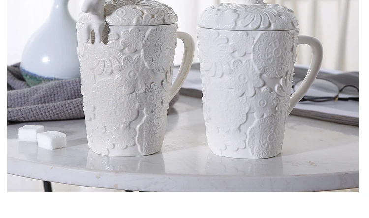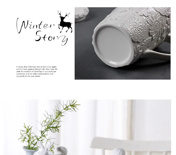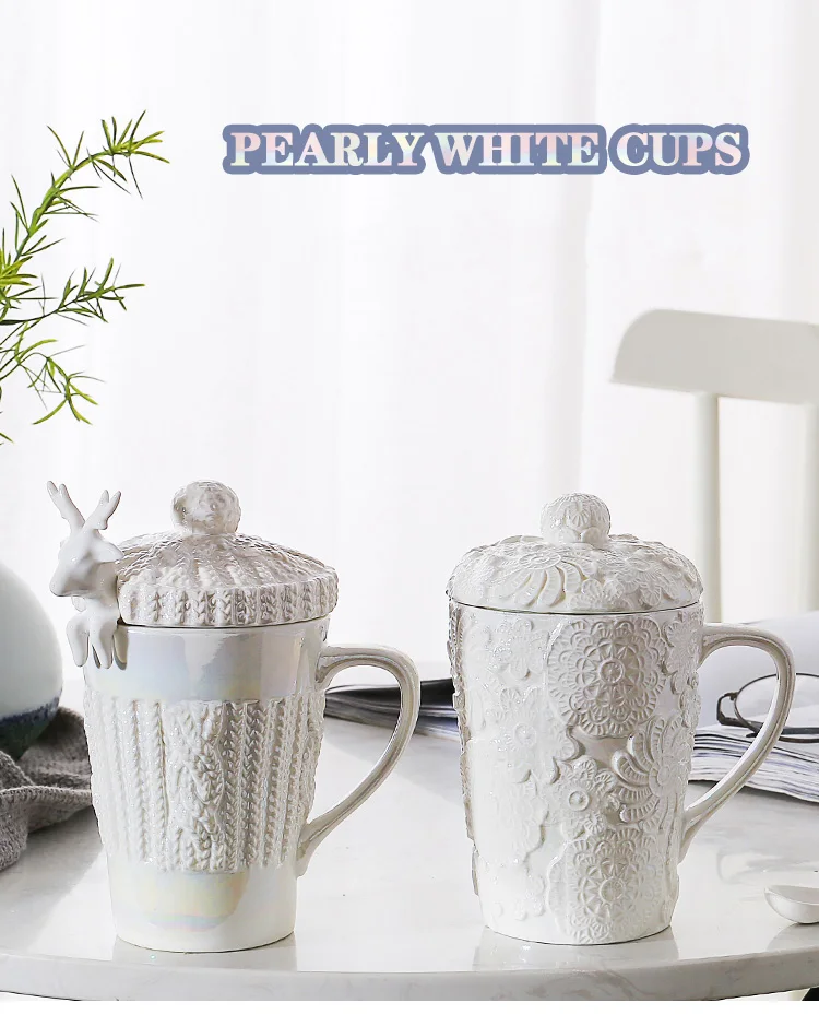 Креативная керамика, жемчужно-белая кружка лося, ложка с крышкой, Рождественская домашняя кофейная чашка для завтрака, подарок на день Святого Валентина