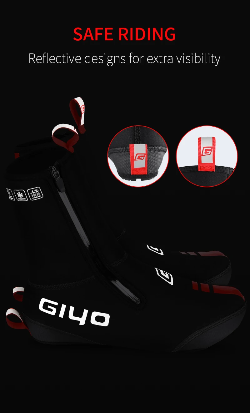 * Светоотражающая часть и Водонепроницаемая молния: есть светоотражающий материал, который может улучшить безопасность ночного велоспорта. Водонепроницаемая молния улучшает Водонепроницаемость чехла для обуви