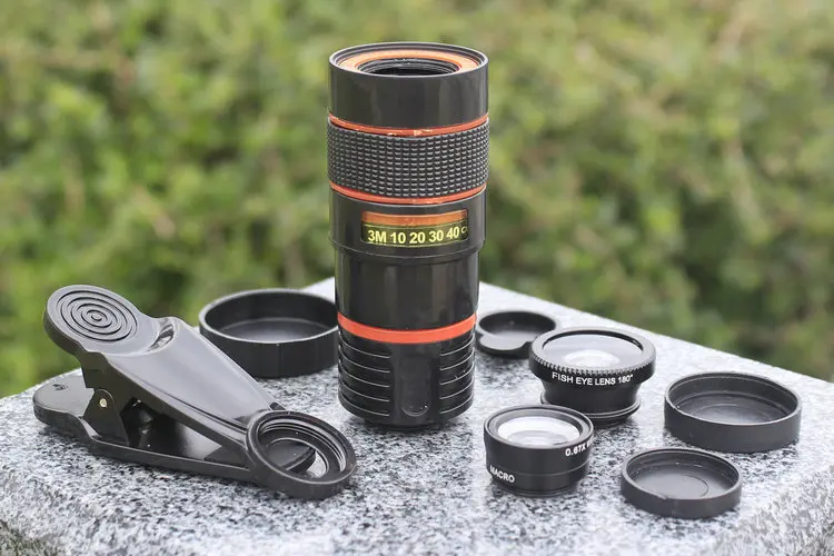 Fish-eye: It can enlarge the shooting range and present a concentrated shape of the scene, which is a very artistic effect Wide Angle: Expand the mobile phone to take pictures of the scene, take photos almost no deformation, can be in a small range of time, take a larger scene! Macro: It is equivalent to a small microscope, which can shoot very small things very clearly. The focus distance of the macro mirror is about 3CM. (wide Angle + macro) is combined in a lens above, the use of macro lens need to unscrew the wide Angle lens, unscrew the wide Angle lens is macro lens! Telescope: To overcome the camera phone can only be myopic can not be far from the shortcomings, so that the vision as clear reproduction of your eyes, and with 8 times zoom, adjustable focal length;