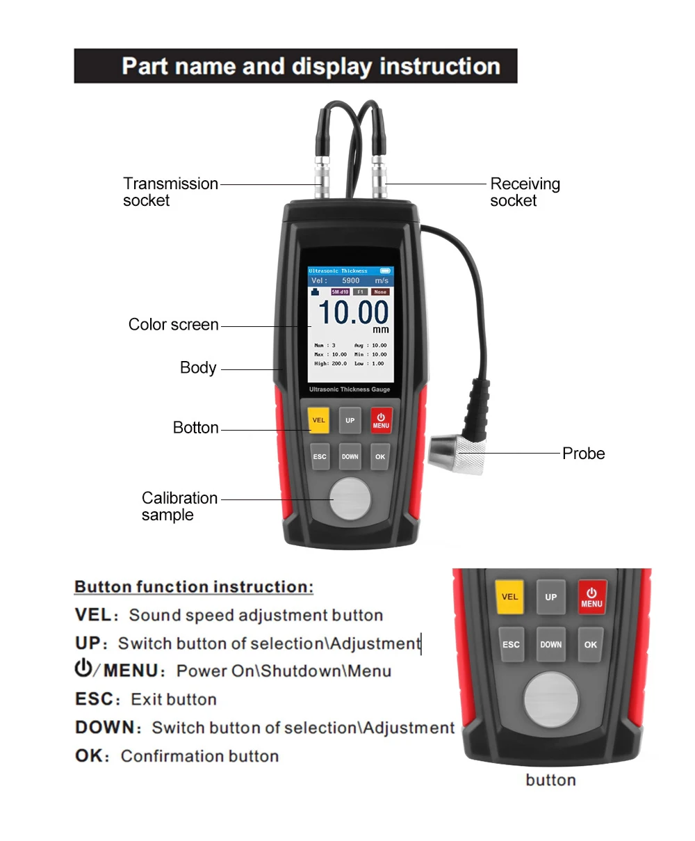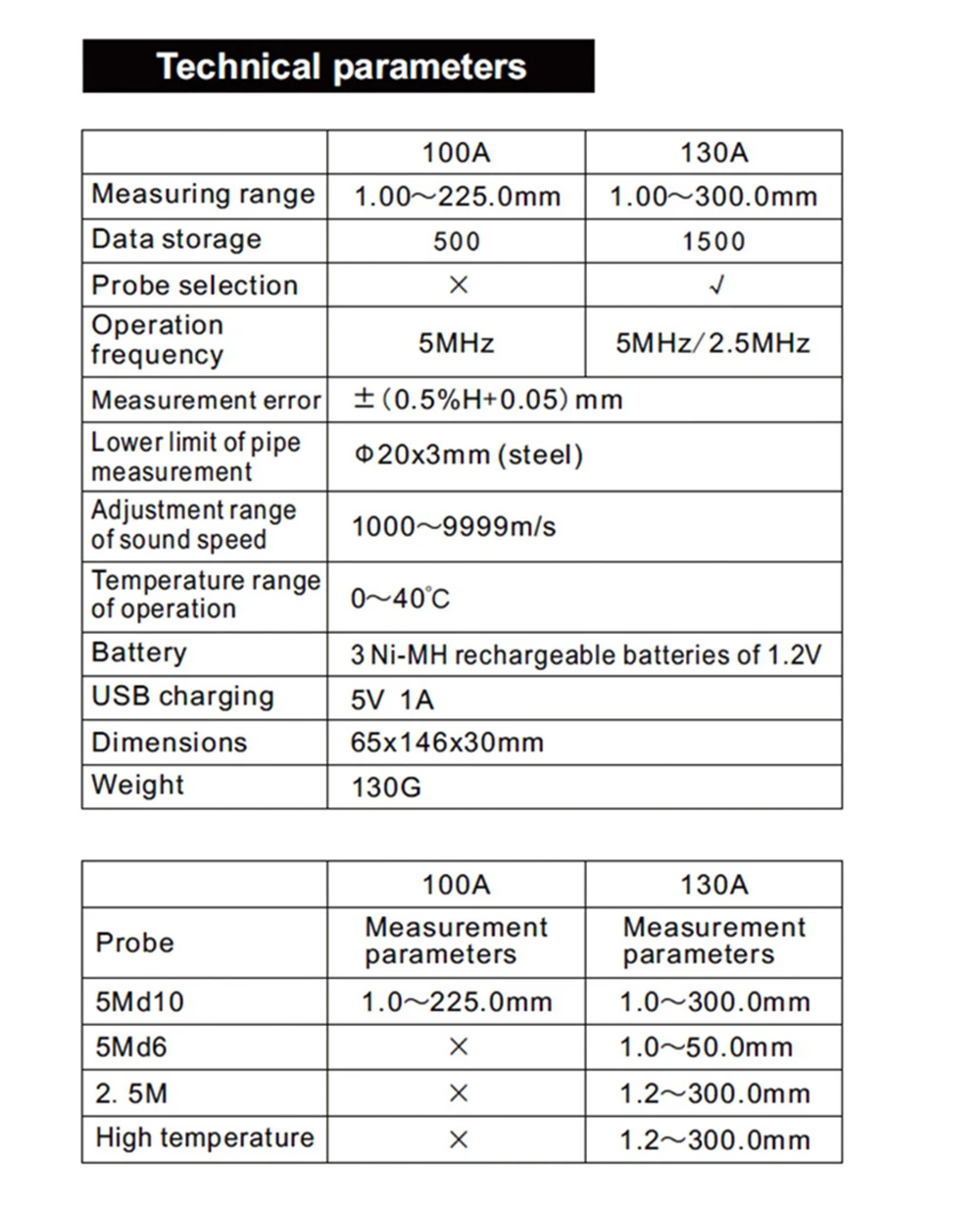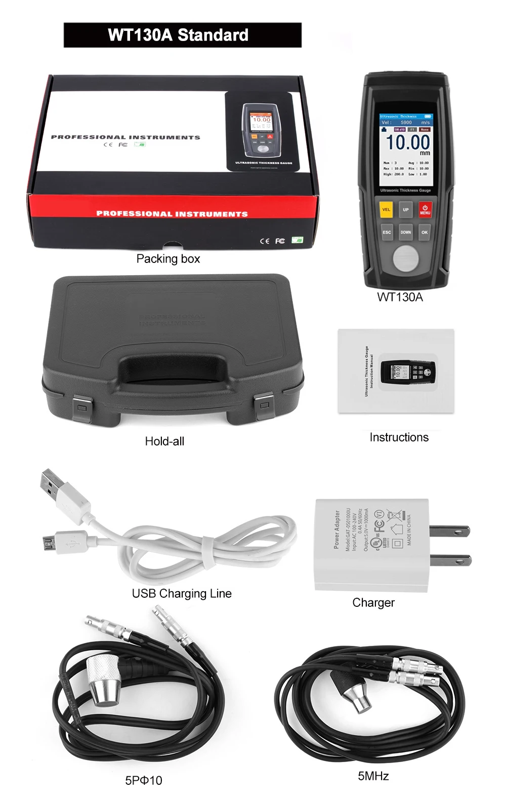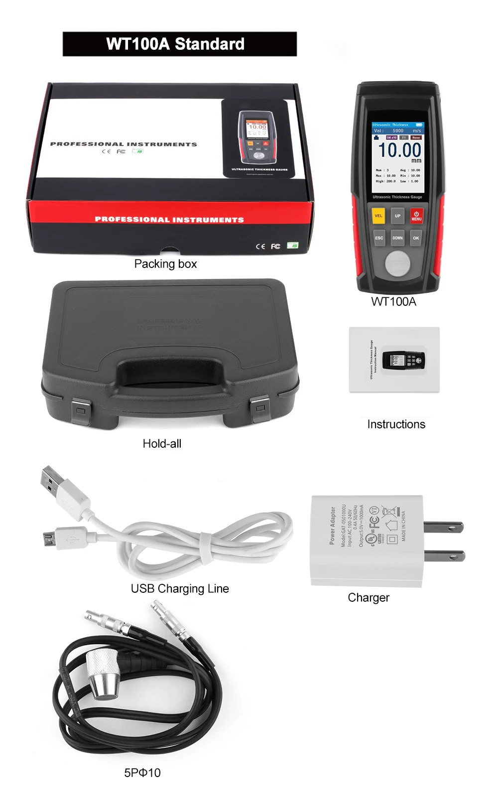 WT100A (1,00-225,0 мм) WT130A (1,00-300,0 мм) Высокоточный металлический ультразвуковой измеритель толщины с USB-зарядкой