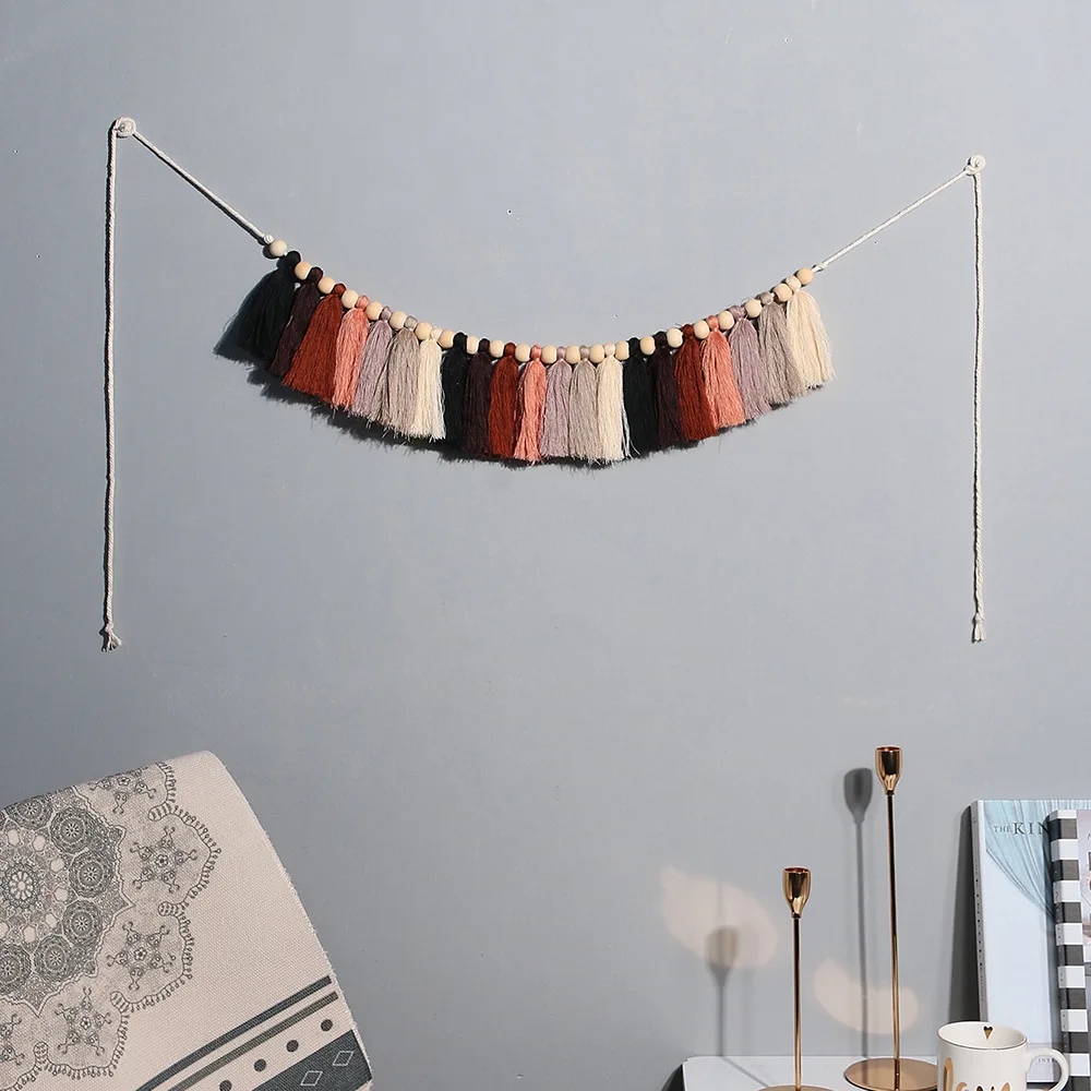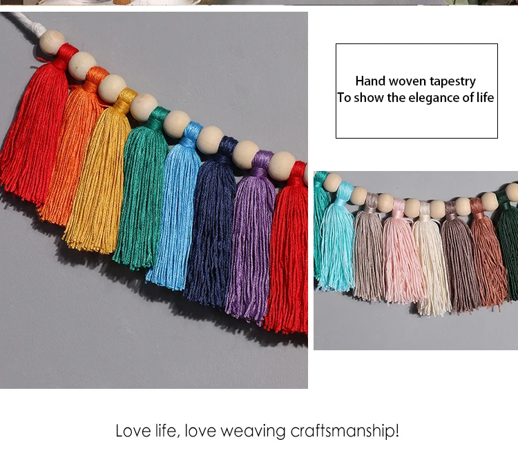 Гобелен с разноцветными кисточками, ручная тканая хлопковая нить, макраме, настенный флаг, гобелены, подарок для девочки, украшение для дома, гостиной, стены