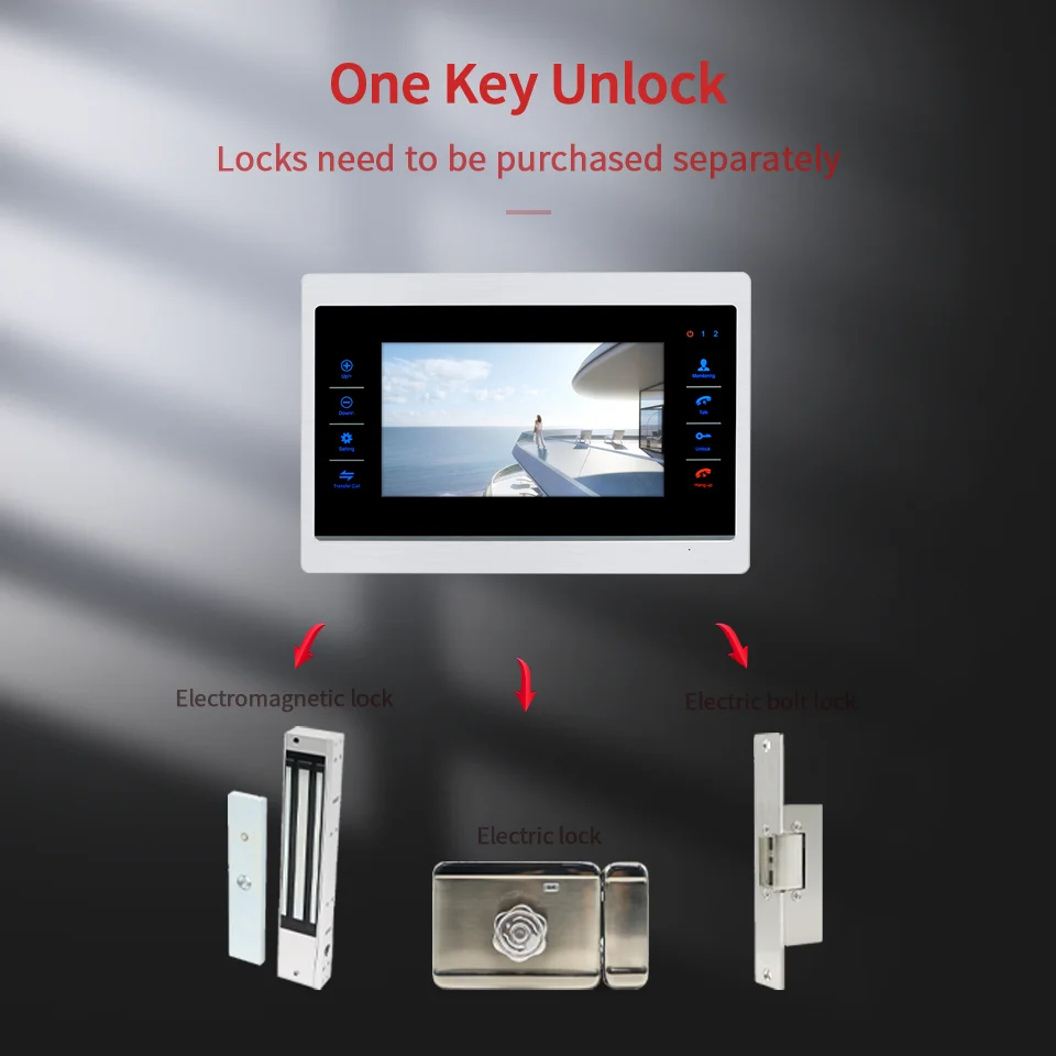 1. tela grande 7 polegadas, imagem é mais clara 2. Меню multilingue 3. apoie o espaço mаximo de armazenamento do cartão de memoria 32 Гб 4. apoie uma chave de desbloqueio e conecte vаrias fechaduras elétricas 5. suporte de bloqueio eletrоnico, câmera analógica, pyr 6. duplo walkie-talkie, transferência de chamada entre monitores