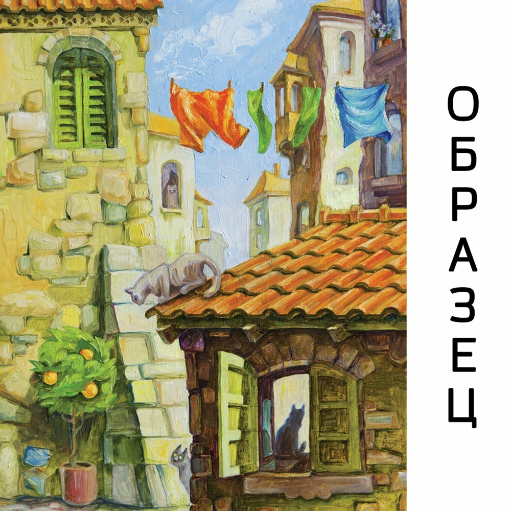 Холст на картоне легко вставить в обычную рамку. Размер - 30х40 см.