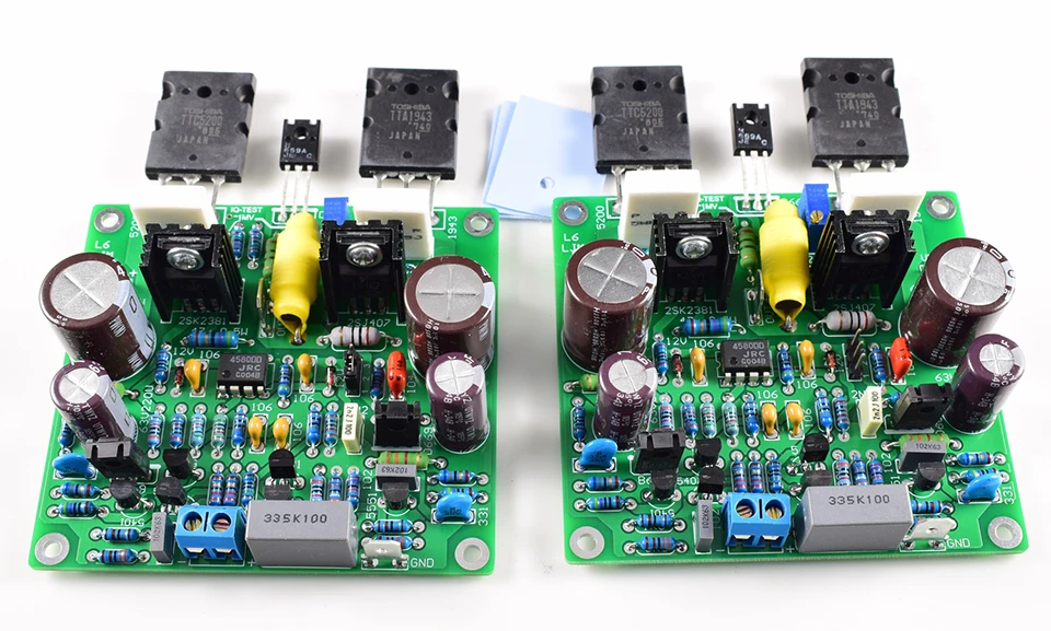 ● Диапазон напряжения питания = DC + -25V to DC положительный и отрицательный + -55V. Рекомендуемое напряжение-постоянный ток + 40 В. ● Выходная мощность RMS = 50-150 Вт 8 Ом ● Усиление выходного напряжения = чистое усиление выходного напряжения задней ступени = 18 раз, ● Комбинированное усиление выходного сигнала переднего и заднего каскадов (переключается в режиме выходного сигнала переднего каскада) = 100 раз ● Предусилитель выключения контактов = 1-2 для чистого заднего выхода, предусилитель ВКЛ = 2-3 комбинированный выход до и после ● Ток покоя, отрегулируйте тест IQ на 2 точки, напряжение 1 мВ, ток покоя 13 мА ● Выходное смещенное напряжение постоянного тока (среднее напряжение постоянного тока) <1,5 мВ (с использованием цепи сервопривода постоянного тока) ● Диапазон частотной характеристики = 20 Гц-20 кГц (-0,1 дБ). 10 Гц-30 к Гц-0,2 дБ ● THD + N = 0.005%-0.008% 15 Вт Выход 8 Ом нагрузка 20 Гц-20 кГц ● SR = 20 в/США ● Коэффициент демпфирования = 100 ● Рекомендуемый размер радиатора = 200 г для моно ● Инструкции по подключению усилителя: источник питания VCC +, GND, VEE-всего три провода. ● Входной сигнал +-, есть 2 линии входного сигнала. ● Выход OUT + подключен к положительному полюсу динамика, а GND подключен к заземлению динамика. ● Размер печатной платы = 82*76 мм длина и ширина ● Расстояние между отверстиями для монтажа печатной платы = Расстояние между отверстиями слева и справа 74 мм. Расстояние между отверстиями вверх и вниз 69 мм ● Расстояние боковой установки силовой трубки = 2SC5200- 2SD669 расстояние 22 мм. 2SD669-2SA1943 расстояние 22 мм
