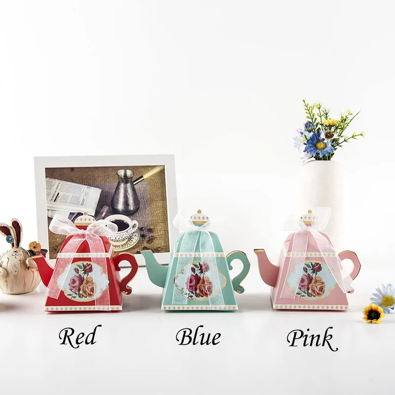 Material: Cardboard Color: Pink/Red/Blue Size: 8.5*8.5*6cm Package included: 10 pcs candy box Application: it is perfect for any tea themed party. Beautiful delicate laser cut designs. Suitable for decorating wine glass and party food. They are perfect for wedding party, birthday party, Christmas party.