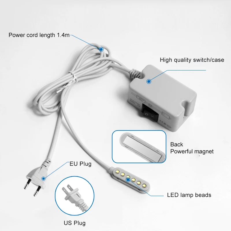 3. С вилкой и мощным магнитом, он может быть установлен на швейной машине.