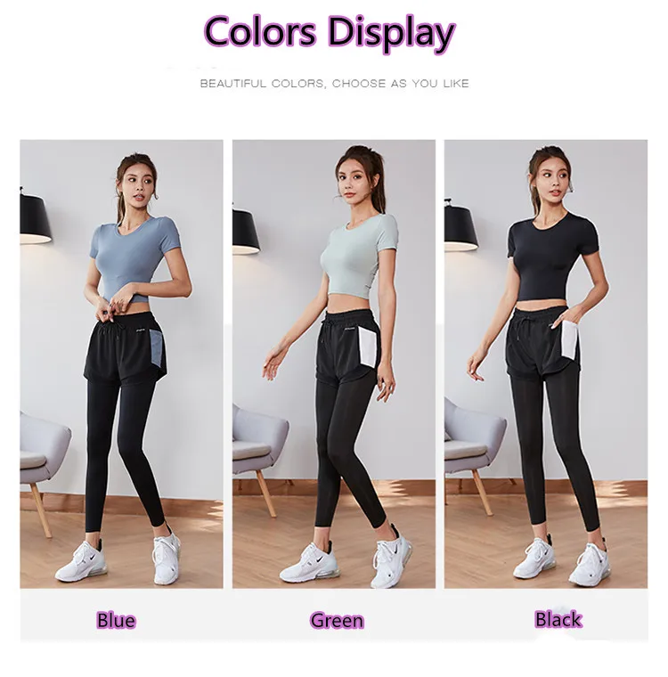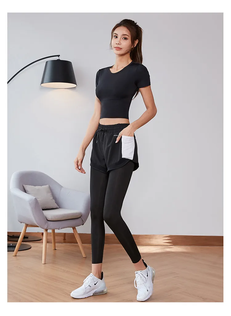 Летний спортивный костюм для женщин, набор леггинсов для занятий йогой, одежда для тренажерного зала, одежда для бега с коротким рукавом, одежда для фитнеса, триан, спортивная одежда, 2 шт.
