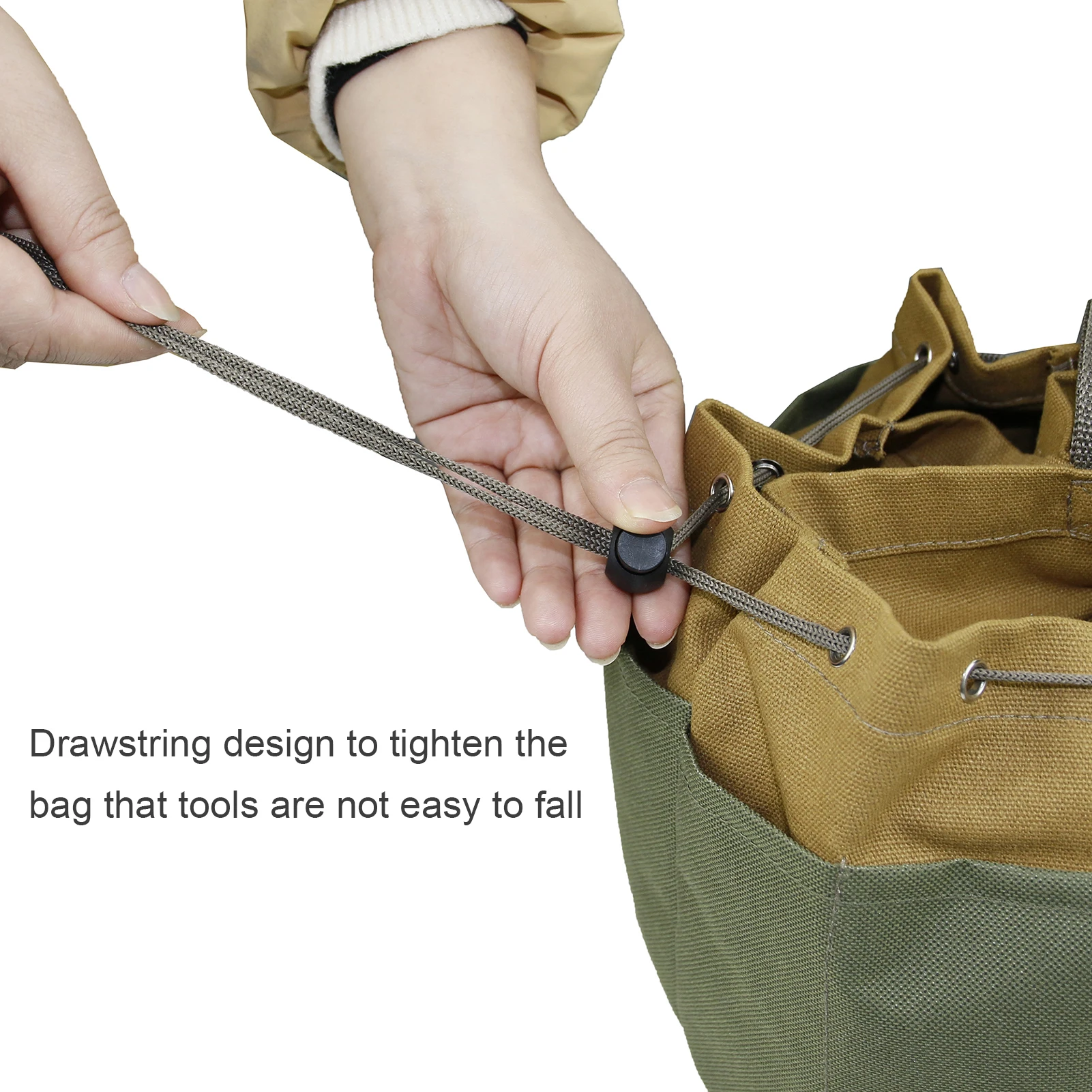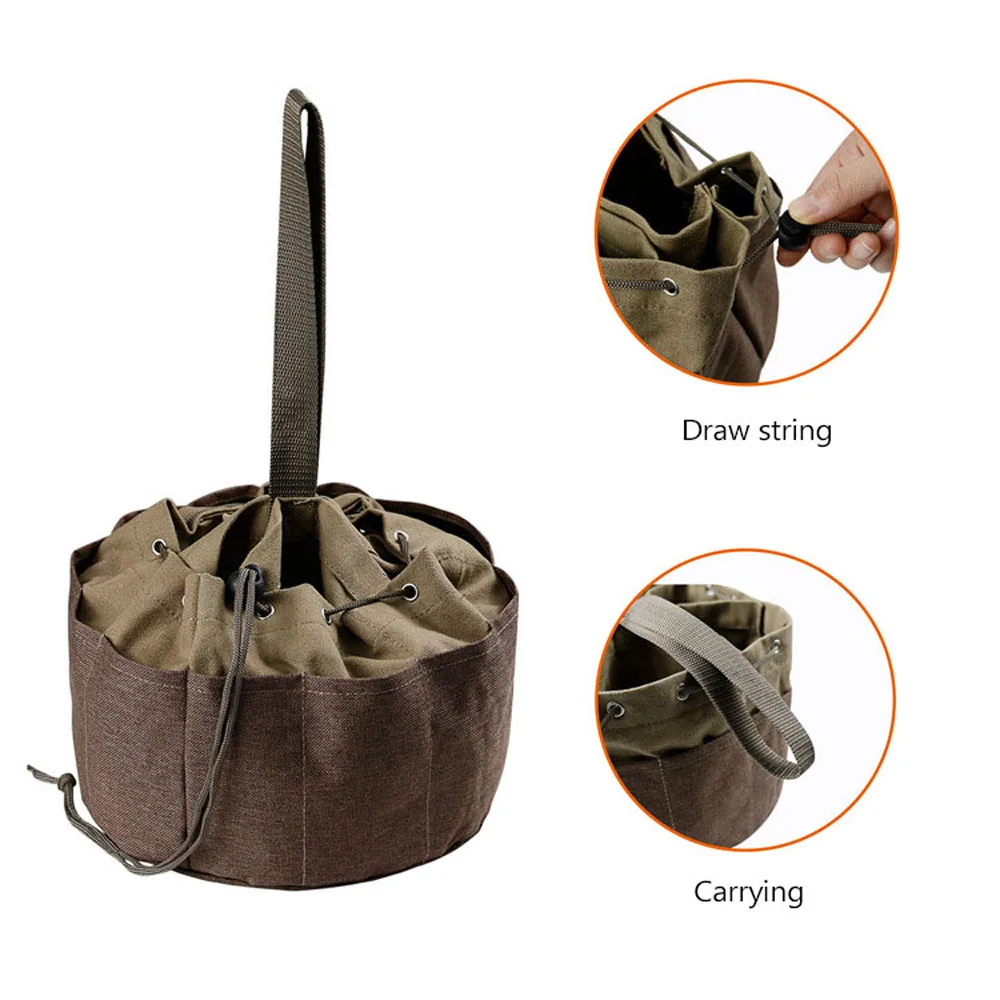 Этот цилиндрический инструмент, большой объем, мульти карман, легко брать, может держать гаечный ключ, плоскогубцы и другие садовые инструменты, износостойкое, складное хранение.
