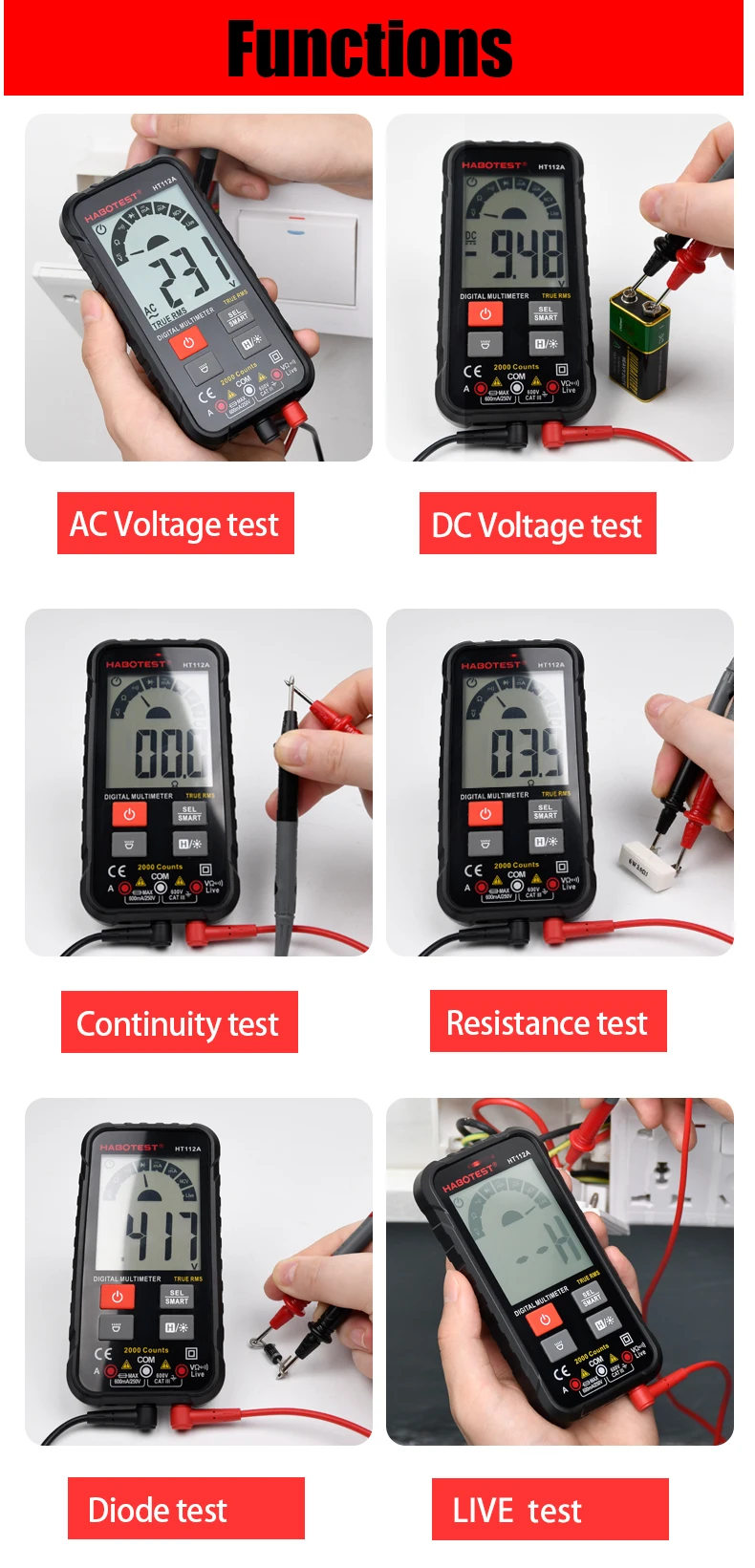 Умный мини-мультиметр, профессиональный цифровой мультиметр, автомобильный тестер, Автоматический диапазон, измеритель напряжения переменного и постоянного тока HABOTEST HT112A