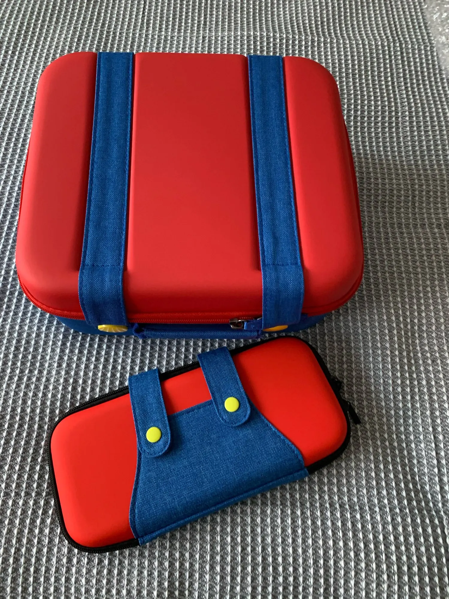 Привлекательный внешний вид, синий и красный, как цвет темы, уникальный дизайн штанов на бретельках, как персонаж мультфильма, выглядит мило и изысканно, более подходит для большинства игроков. Двойная застежка-молния и кнопочный переключатель надежно защищают игровые аксессуары, легко размещаются и снимаются