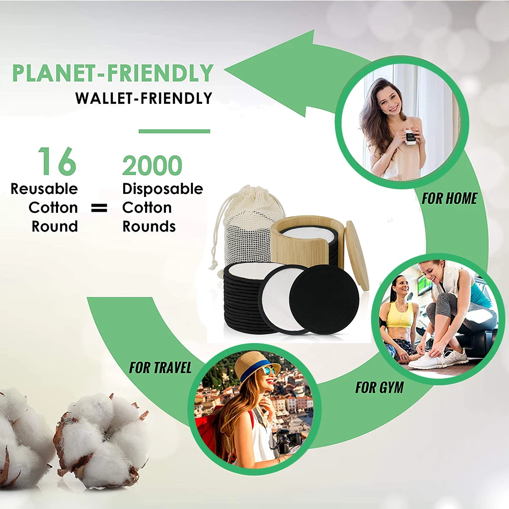 🍀Мягкий легко чистится-Натуральный Бамбуковый хлопок очень подходит для очистки пор, с хорошей впитываемостью, он может 100% полностью удалить макияж, И очищает кожу более тщательно, чем традиционная хлопковая подкладка. 16 подушечек для макияжа-это эквивалент 1600 одноразовых салфеток для макияжа, подушечек или ватных шариков, экономьте ваши деньги!