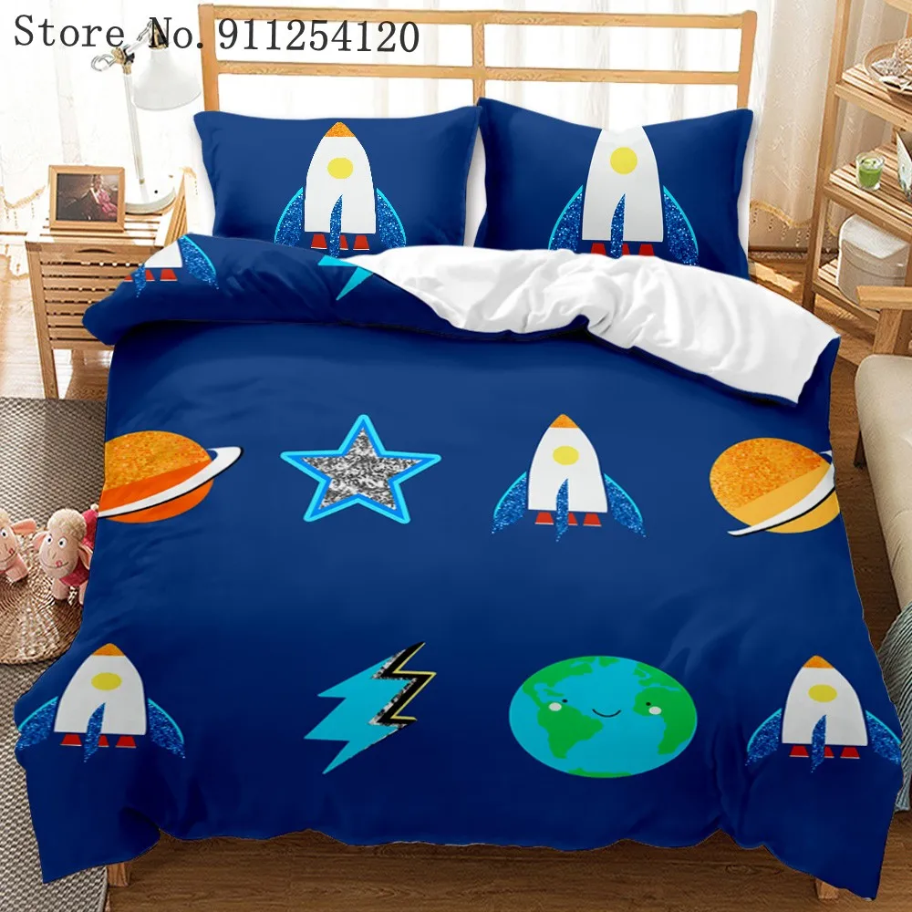 Комплект постельного белья с космическим кораблем, детский пододеяльник с изображением космонавта, Комплект постельного белья с 3D принтом «Луна Галактика», пододеяльник