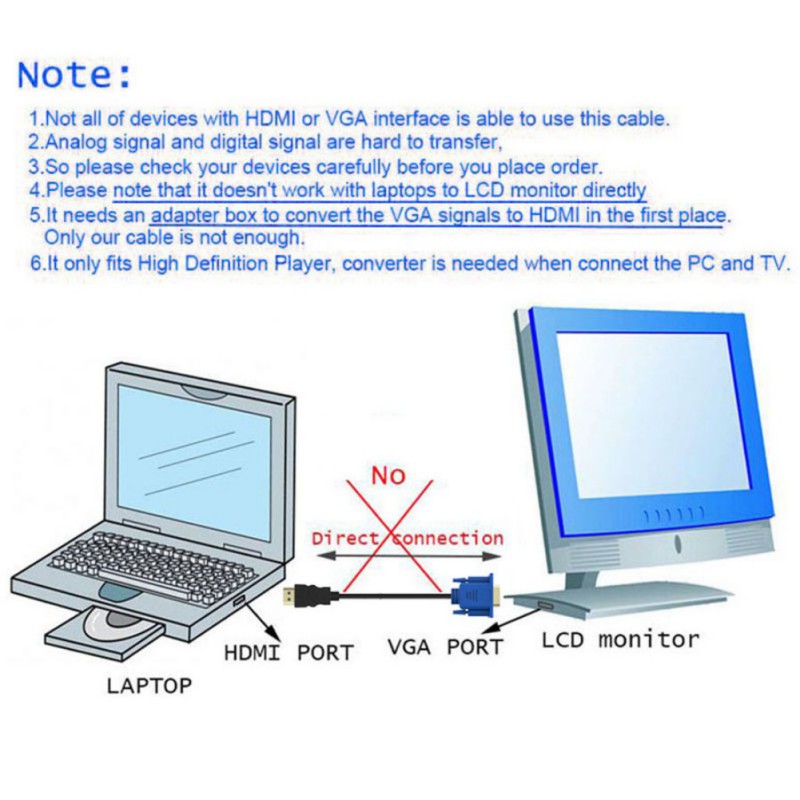 2. Обратите внимание, что он не работает с ноутбуками на ЖК-мониторе напрямую и что вам понадобится блок адаптера для преобразования сигналов HDMI в VGA в первую очередь. Только нашего кабеля недостаточно.