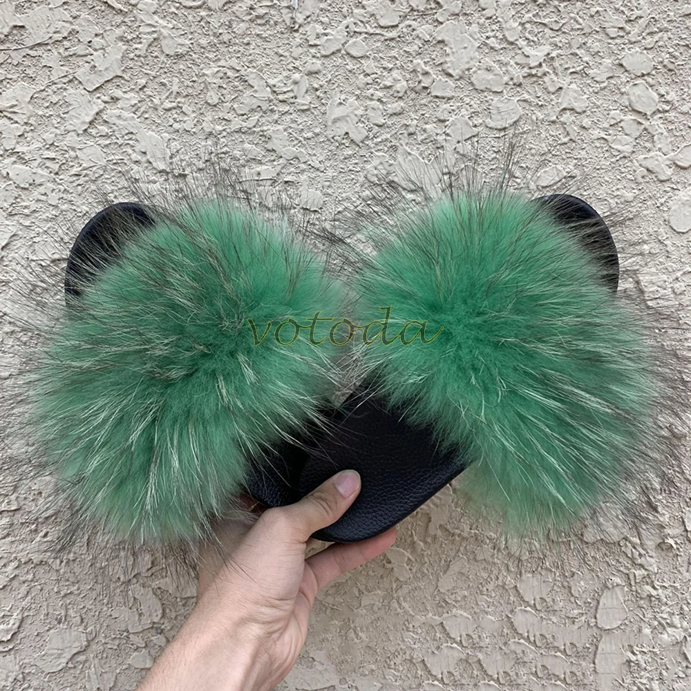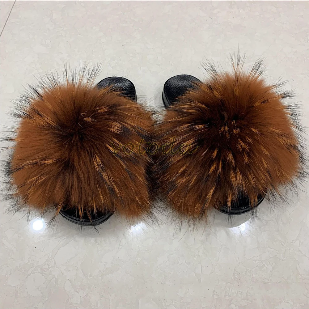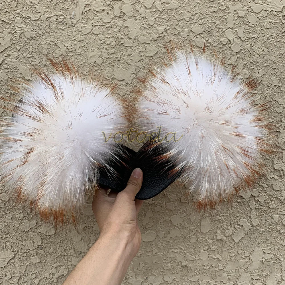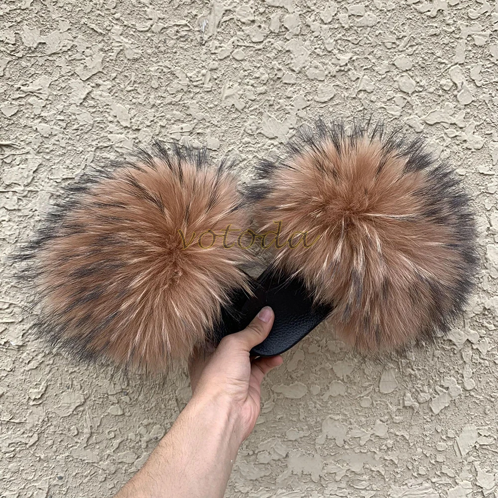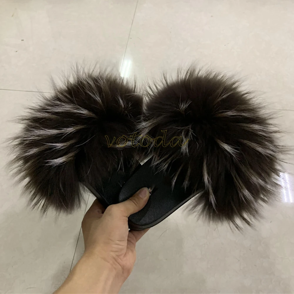 Новые меховые тапочки; Женские шлепанцы с пушистым натуральным лисьим мехом; Вьетнамки из меха енота; Удобные домашние сандалии; Летняя женская обувь на меху