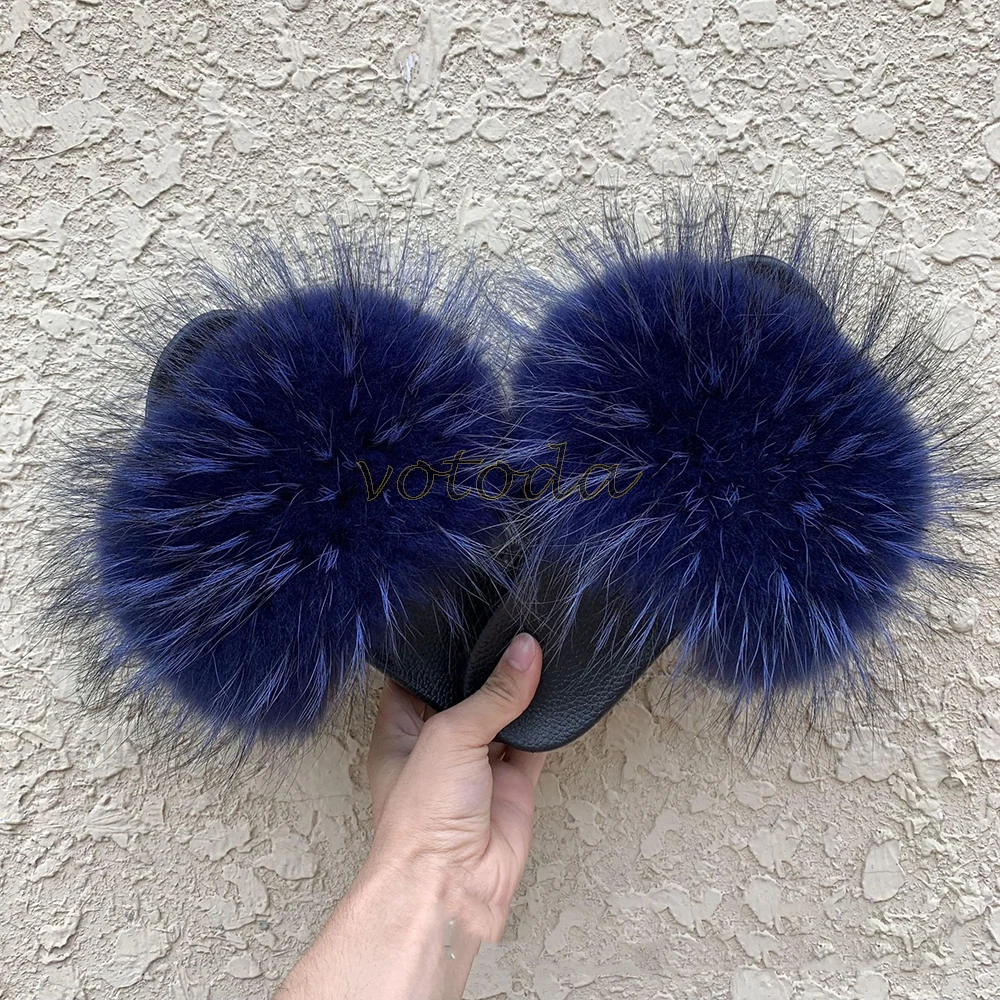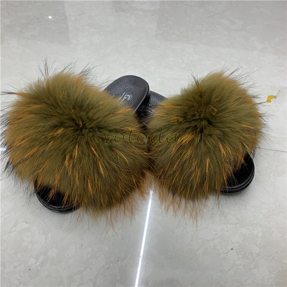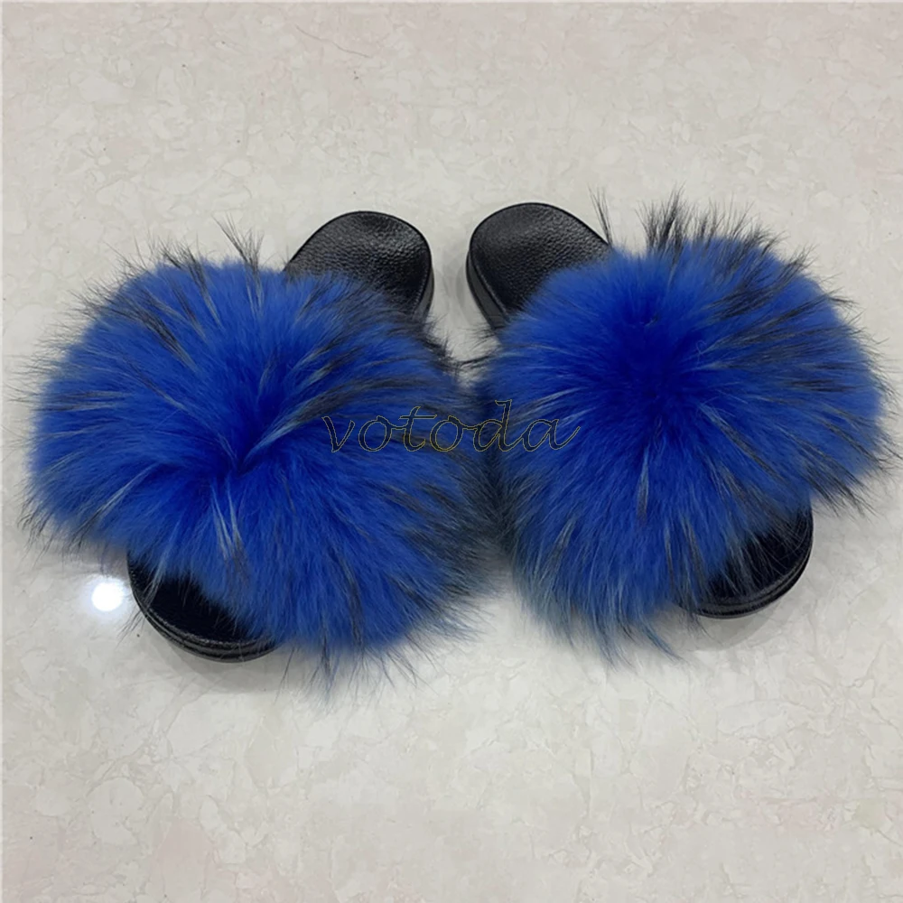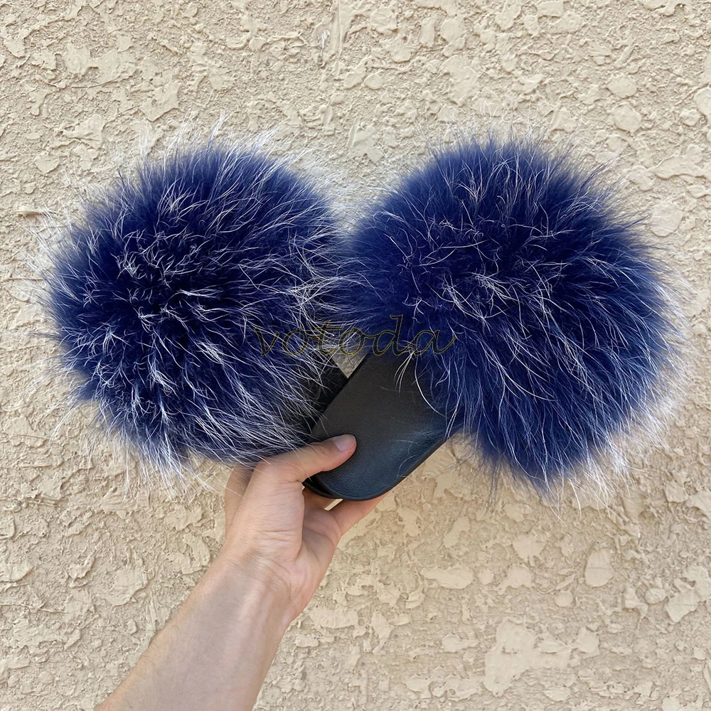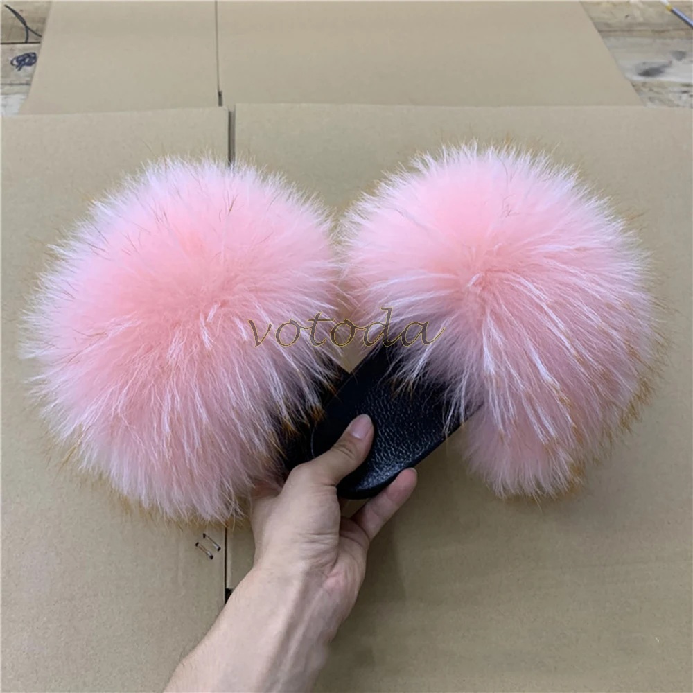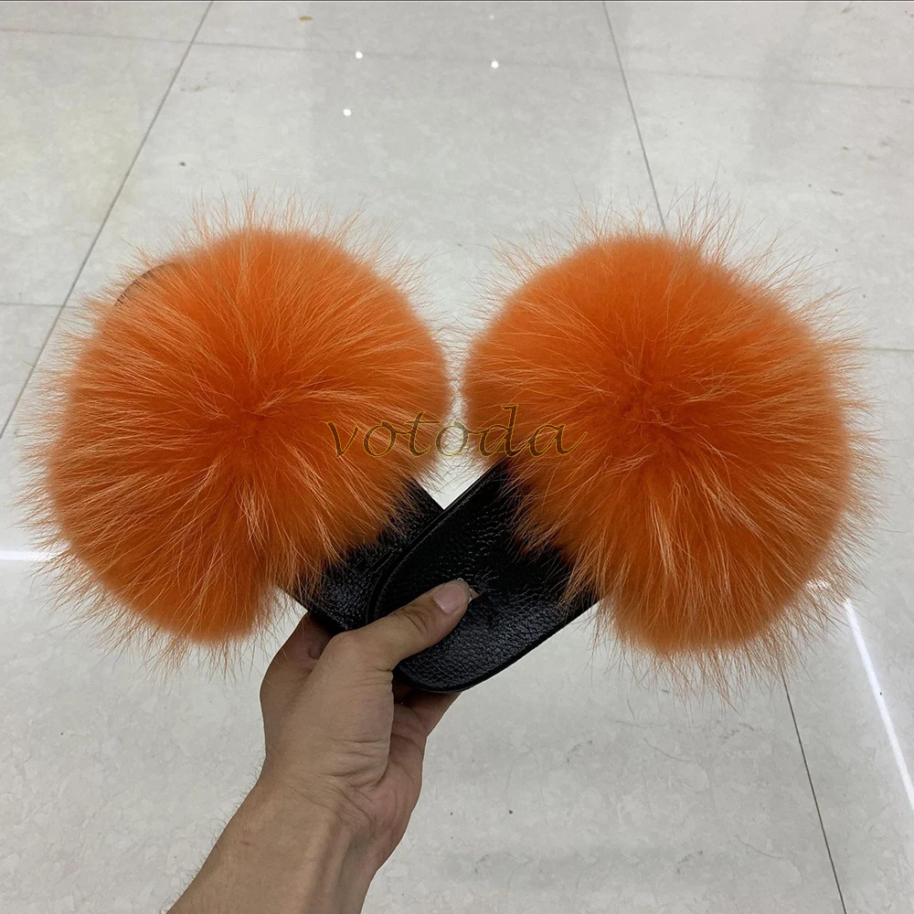 Новые меховые тапочки; Женские шлепанцы с пушистым натуральным лисьим мехом; Вьетнамки из меха енота; Удобные домашние сандалии; Летняя женская обувь на меху