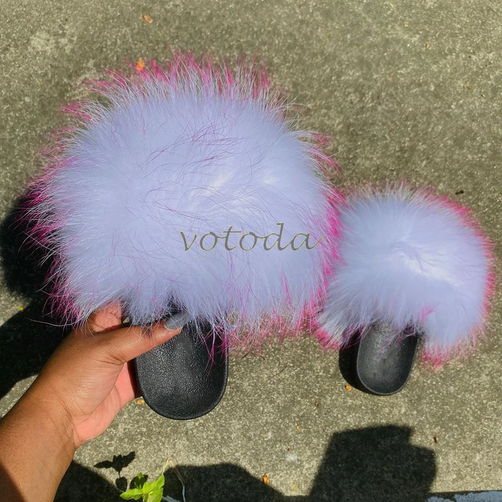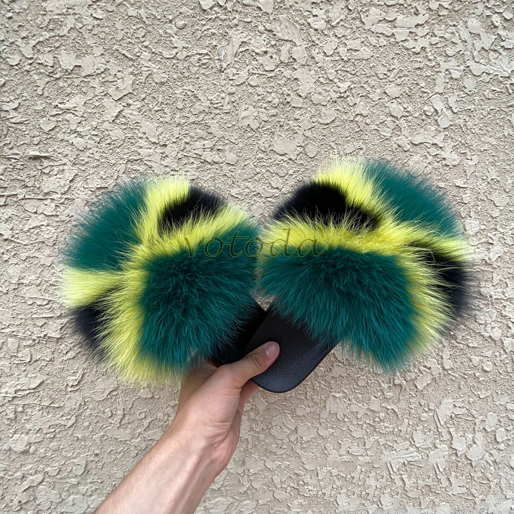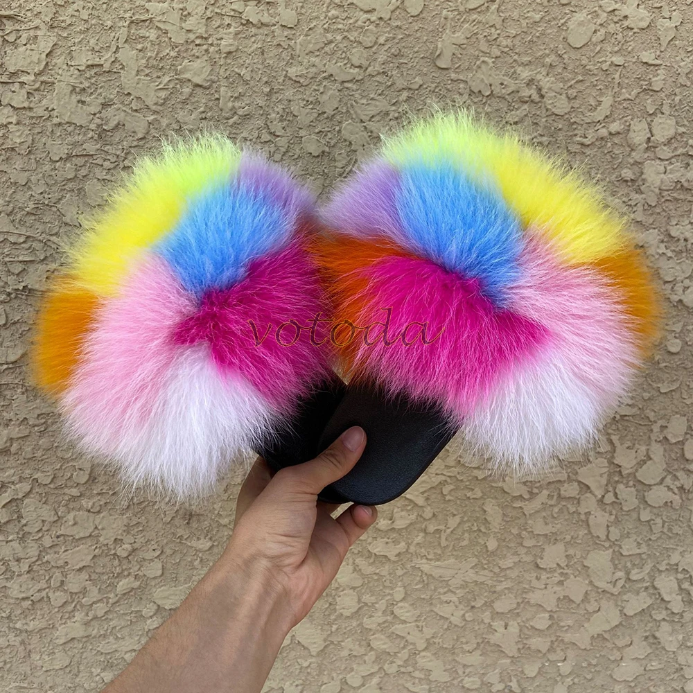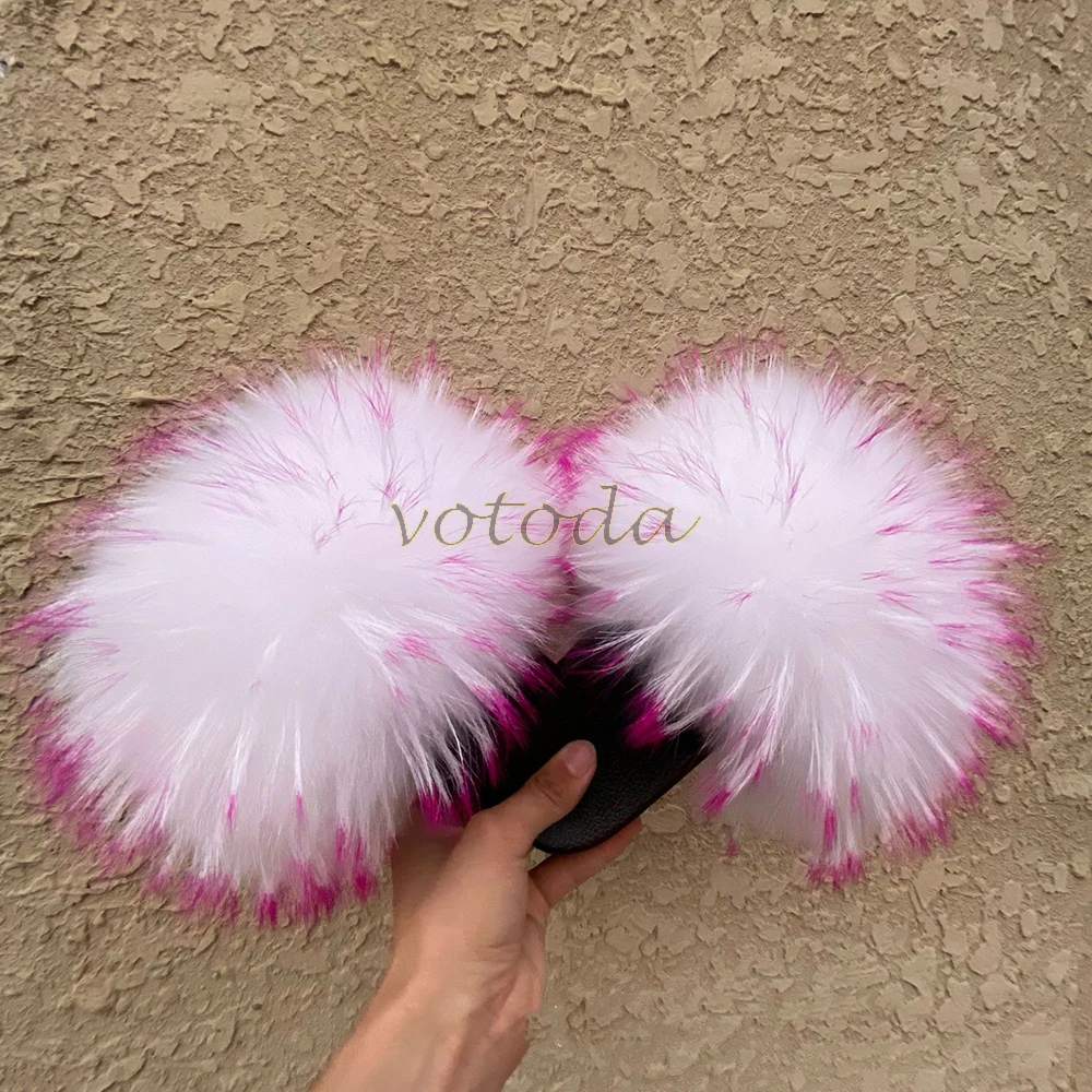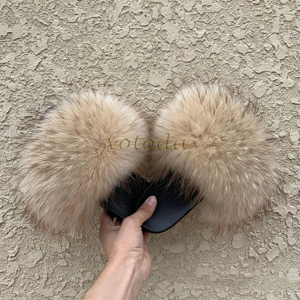 Новые меховые тапочки; Женские шлепанцы с пушистым натуральным лисьим мехом; Вьетнамки из меха енота; Удобные домашние сандалии; Летняя женская обувь на меху