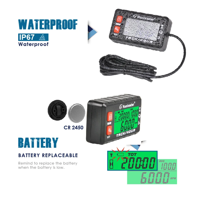 Индуктивный Тахометр для отслеживания изменения масла, счетчик часов с подсветкой, цифровой Тач-счетчик для 2 или 4 тактов, время обслуживания бензинового двигателя и обнаружение оборотов в минуту, простота установки и эксплуатации.