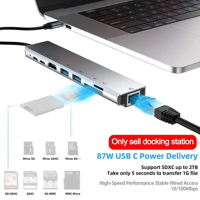 Название продукта: Type-C в PD + USB3.0 * 2 + SD + TF + HDMI + RJ45 + type-c док-станция (8 в 1)