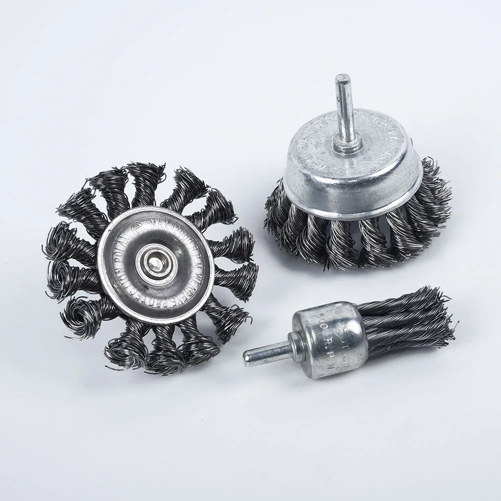 3 шт., стальной поворотный узел, плоская проволока, колесо, чашка, щетка, диск, Удаление ржавчины, полировка для дрели, угловая шлифовальная машина, гаджет, вращающийся инструмент