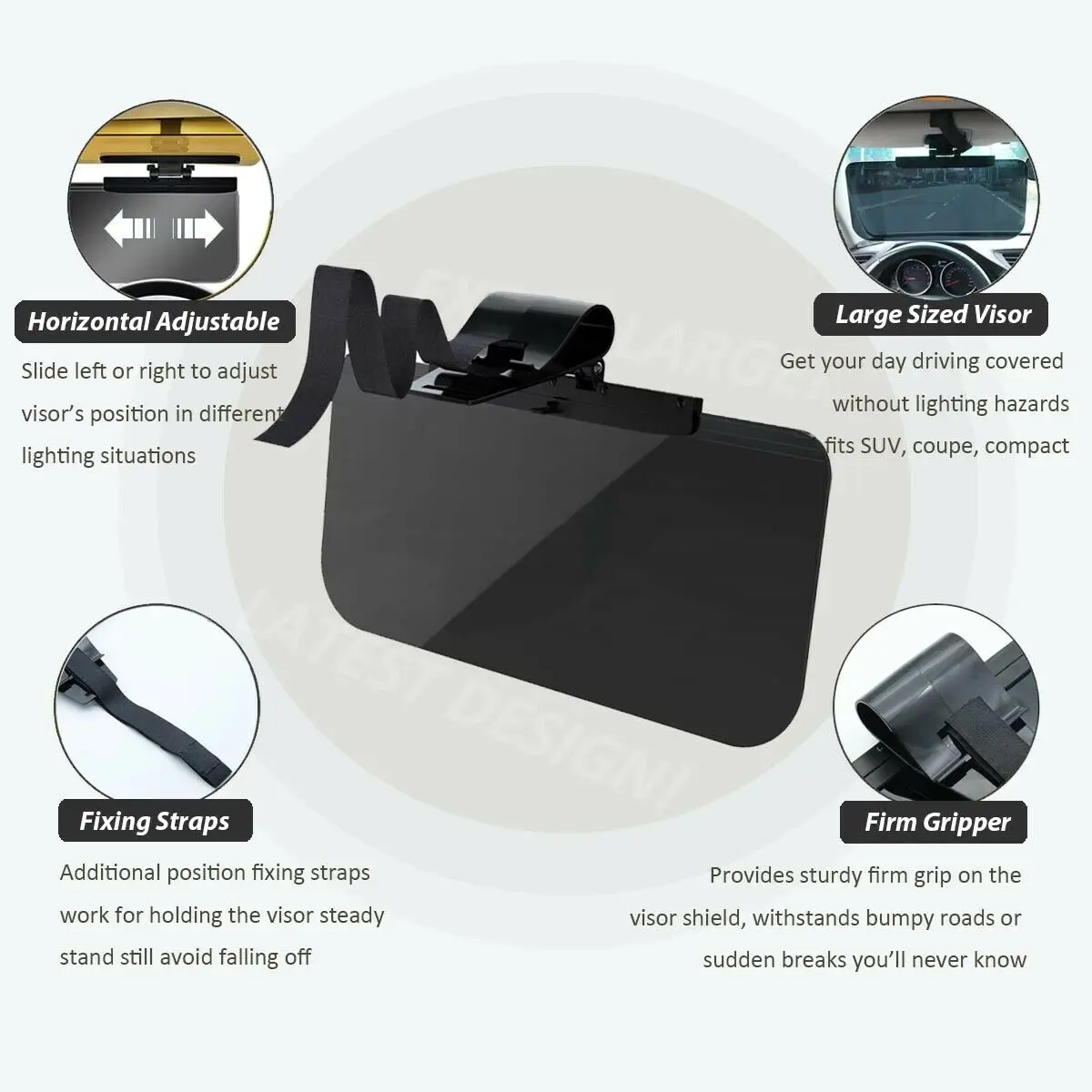 ★Установка для любого автомобиля: универсальный размер козырька подходит для широкого спектра автомобилей с регулируемым держателем зажима, скользящим козырьком. Простая установка без необходимых инструментов, просто закрепите и перейдите. Наслаждаться безопасной веселой ездой проще, чем когда-либо.