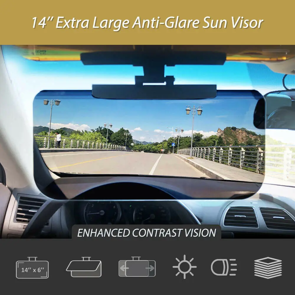 Больные и устали от дальних людей ночью? Или вы чувствуете головокружение в солнечный день во время вождения по высокой дороге? Или сильные зимние белые Дожди могут поставить вас в опасность на дороге. Ну, теперь вы можете плотно сидеть с нашим ультра твердым антибликовым солнцезащитным козырьком под этими экстремальными сценариями освещения. Просто Закрепите его на солнцезащитном козырьке и переверните его вверх и вниз для безопасной и звуковой поездки.