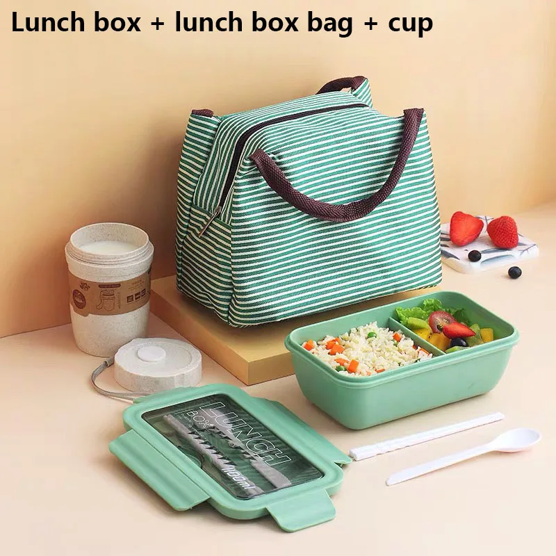 Комплект 3В комплект входит сумка для ланча, Ланч-бокс, ложка, вилка, прямая соломинка, изогнутая солома, соломенная кисть и сумка для посуды.