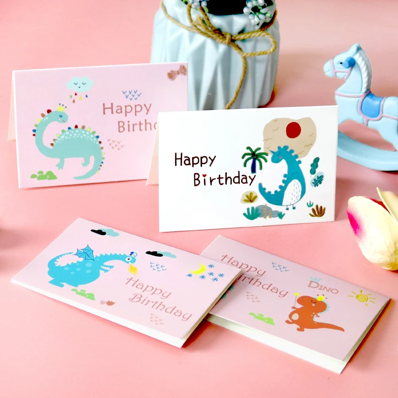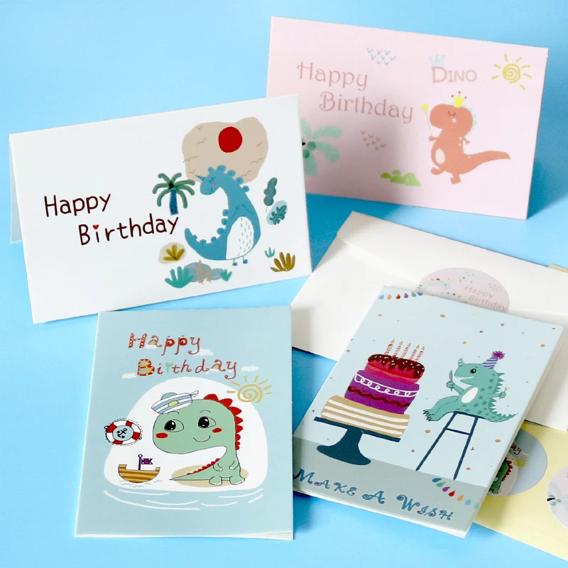 6 комплектов футболок с днем рождения складной наборы карт пустой внутри для самых маленьких девочек и мальчиков с принтом динозавра вечерние поздравительные карты с конвертом наклейки