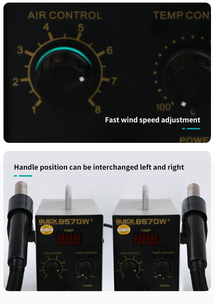 Быстрый 857DW + Интеллектуальный цифровой дисплей точный контроль температуры двойной вихревой пистолет горячего воздуха