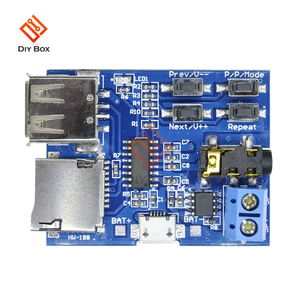 1) Поддержка формата MP3, включение питания автоматически. Когда mp3 воспроизводится, мигает красный светодиодный индикатор.