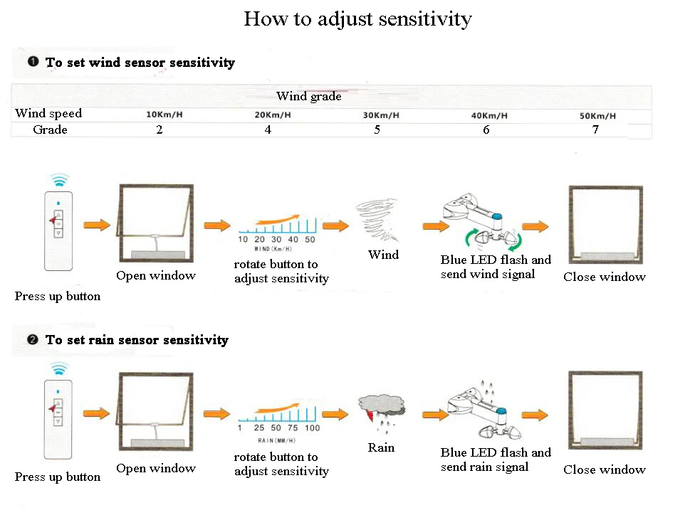 Один датчик может управлять разными окнами, чтобы открыть или закрыть одновременно (не отдельно), одно окно один приемник, пожалуйста, свяжитесь с нами, если хотите больше приемников. Другие удаленные контроллеры вы также можете добавить.