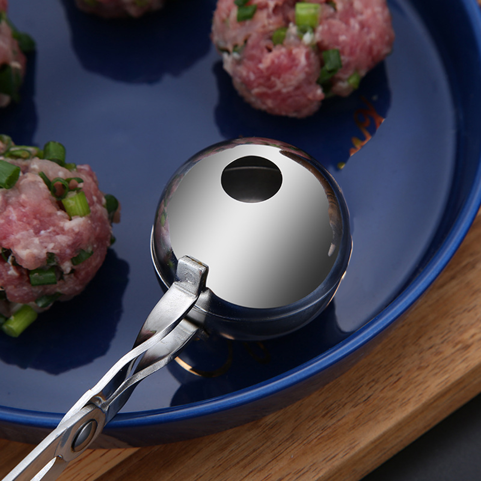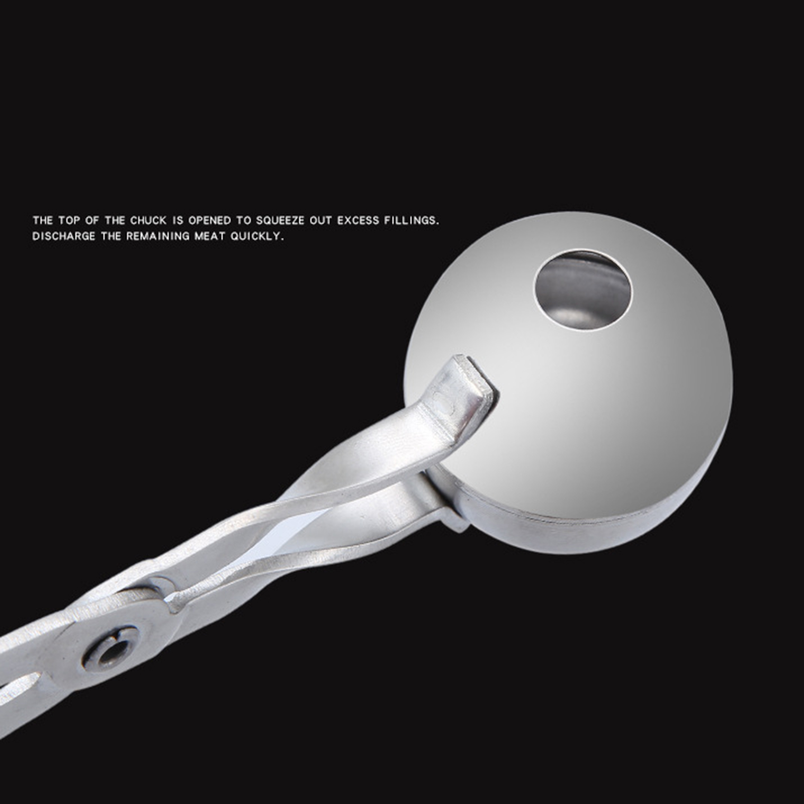 3. Поместите нарезанное мясо на совок и закрепите его, чтобы выжать излишки мяса через отверстие. Затем вы можете использовать палочки для еды или ложку для удаления мяса вокруг ложки.