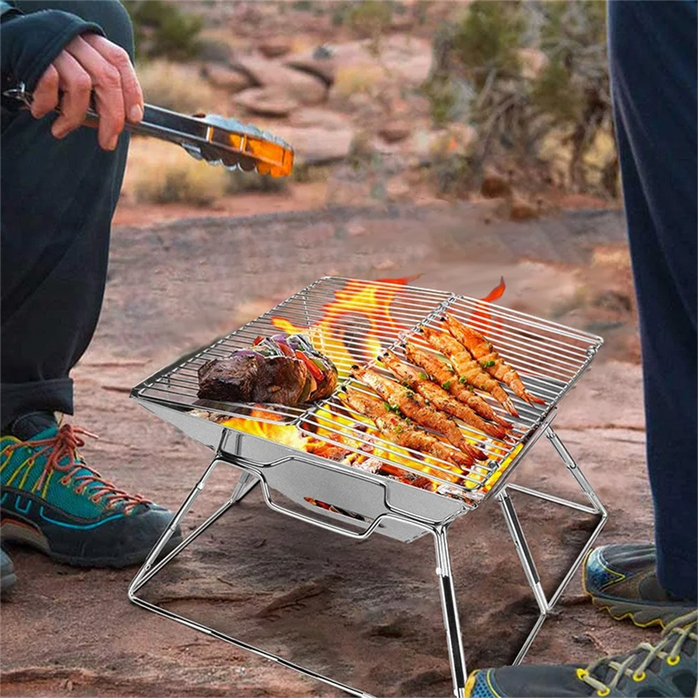 √Многофункциональность -- наш складной гриль для барбекю можно использовать как гриль для барбекю или костра для кемпинга. Вы можете использовать его для готовки на открытом огне или во время приключений на свежем воздухе. √Прост в использовании-содержит 5 деталей. Вы можете легко настроить или оторвать его менее чем за 1 минуту. √Прочный материал-изготовлен из прочной нержавеющей стали. Изделие антикоррозийное, Термостойкое, устойчивое к коррозии, его нелегко деформировать для длительного использования. √ Гриль в форме воронки с ветростойкостью обеспечивает высокоэффективный сбор тепла. Отверстия для воздушного потока и растворная доска, разделяющая уголь и пыль, помогают эффективно сжигать уголь. √GREAT BENIFIT-все детали закругленные, гладкие, не повреждают руки. Он имеет антипригарную поверхность для гриля и может быть легко очищен после приготовления блюдец или сочной курицы. √Идеально подходит для кемпинга, пеших прогулок, пикников, патио, вечеринок в помещении, на открытом воздухе, путешествий, отпуска, парка, сада, пляжа с друзьями или семьей.