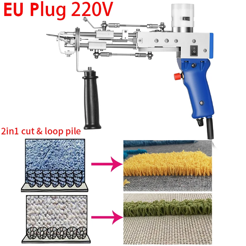1. 【 2 в 1 TUFTING GUN】 --- Электрический коврик Tufting пистолет может вручную переключаться между срезанным ворсом/петлей ворсом, просто нужно заменить ножницы. Одна машина с двумя функциями, более экономичная. Высота ворса регулируется от 10-19 мм (срезанный ворс) , 5-14 мм (петельный ворс).