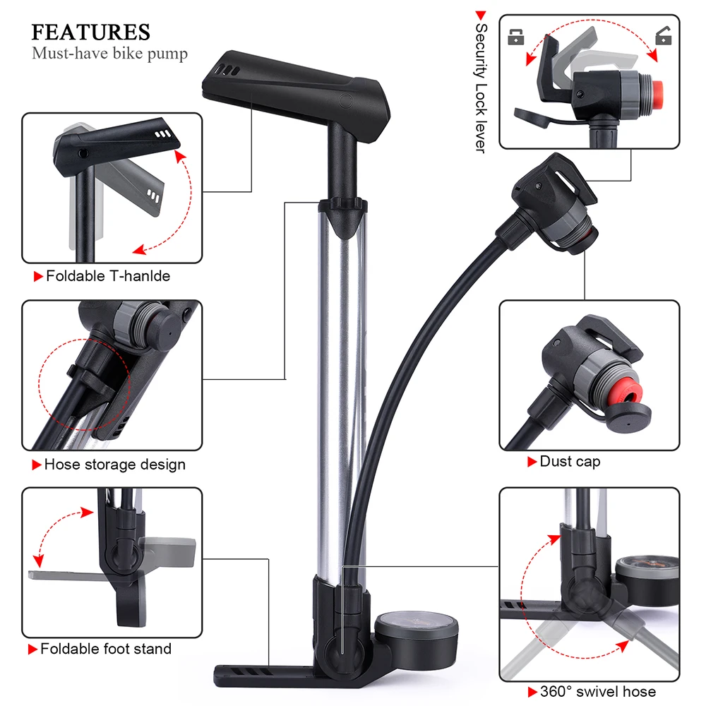 [Портативный и быстрый надуваемый]: напольный мини-насос GIYO сочетает в себе портативность обычного ручного насоса с эффективной работой гусеничного насоса. Вертикальный ход позволяет прижать к полу для быстрого достижения высокого давления или заполнения шин большого объема. Это означает, что намного проще и быстрее поднять шины до достойного давления, при возможном максимальном давлении 120PSI. [Точное давление]: Этот портативный каркасный насос имеет переключаемую головку для размещения клапанов Schrader, Presta и Dunlop. С помощью промышленного точного манометра 1,5 дюйма вы можете накачивать шину до нужного давления без дополнительного манометра. [Простота и удобство использования]: наш велосипедный насос со складной Т-образной ручкой, удобной эргономичной ручкой облегчает нанесение усилия во время насоса. И ножка на дне выскальзывает наружу и вы можете поставить ногу на нижнюю подставку во время накачивания. Такая конструкция делает накачивание намного проще и быстрее. [Компактный и легкий]: корпус из высококачественного сплава с прочными и точными деталями, что делает его одновременно прочным и элегантным. Длина: 13-17,3 дюйма, носить с собой этого маленького парня не составит никаких проблем. Вес в 157 г это тяжелый выбор мини-насоса, но это того стоит для удобства в использовании.