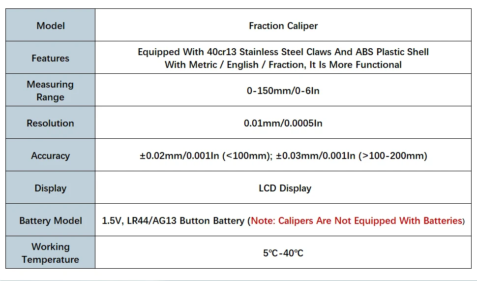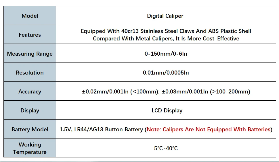 Диапазон измерения: 0-150 мм/0-6 дюймов