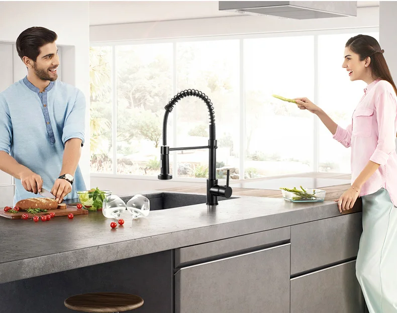 Матовый черный смеситель для кухни
