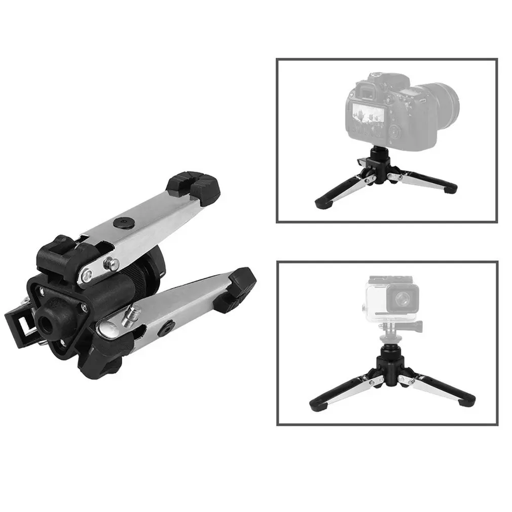 Особенности: 1. Компактный и портативный: будучи таким мини и легким, этот продукт не занимает много места и может быть легко удален. 2. Прочный материал: Этот продукт изготовлен из высококачественного материала, прочный, длительный срок службы, прочный и стабильный в использовании. 3. Быстрое закрытие, небольшой штатив, легко носить с собой, взять все, что вы хотите, идеально в изготовлении. 4. Усовершенствованная безопасная и стабильная система, нажмите и отпустите штатив, отпустите и зафиксируйте штатив, проста в эксплуатации, прочная и стабильная. 5. Износостойкий и противоскользящий дизайн принимается в нижней части, а тонкий мягкий резиновый материал ABS принимается, с высоким коэффициентом трения, чтобы предотвратить скольжение самолета. Описание: Универсальный стандартный UNC 1 / 4 дюйма Винт для камеры, может использоваться с различные устройства, практичный, широкий спектр функций. Характеристики: Материал: алюминиевый сплав Размер: 110*55*28 мм Дорожный просвет: 120 мм Диапазон подшипников: 2-5 кг Винт: UNC 1/4 дюйма Цвет: серебристый + черный Посылка включает в себя: 1 * опорная рама