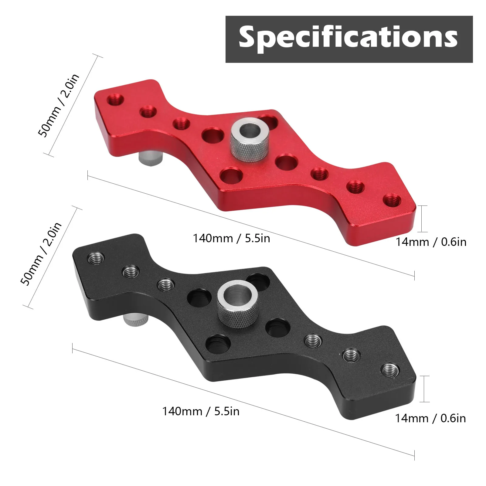 Регулируемый джиг древесины: 2 фиксированные ножки джига сверла легко разбирать и регулировать, подходит для деревянных досок различной толщины 44 мм/74 мм/104 мм.