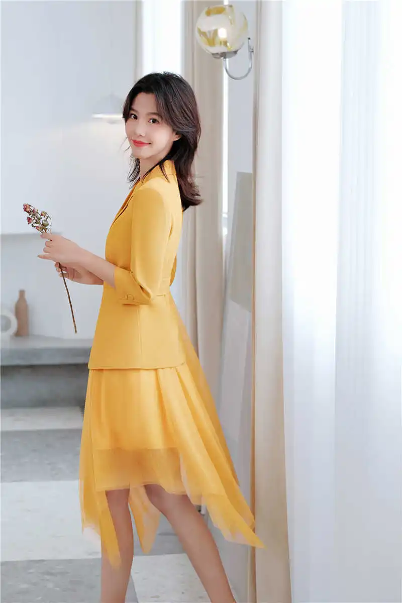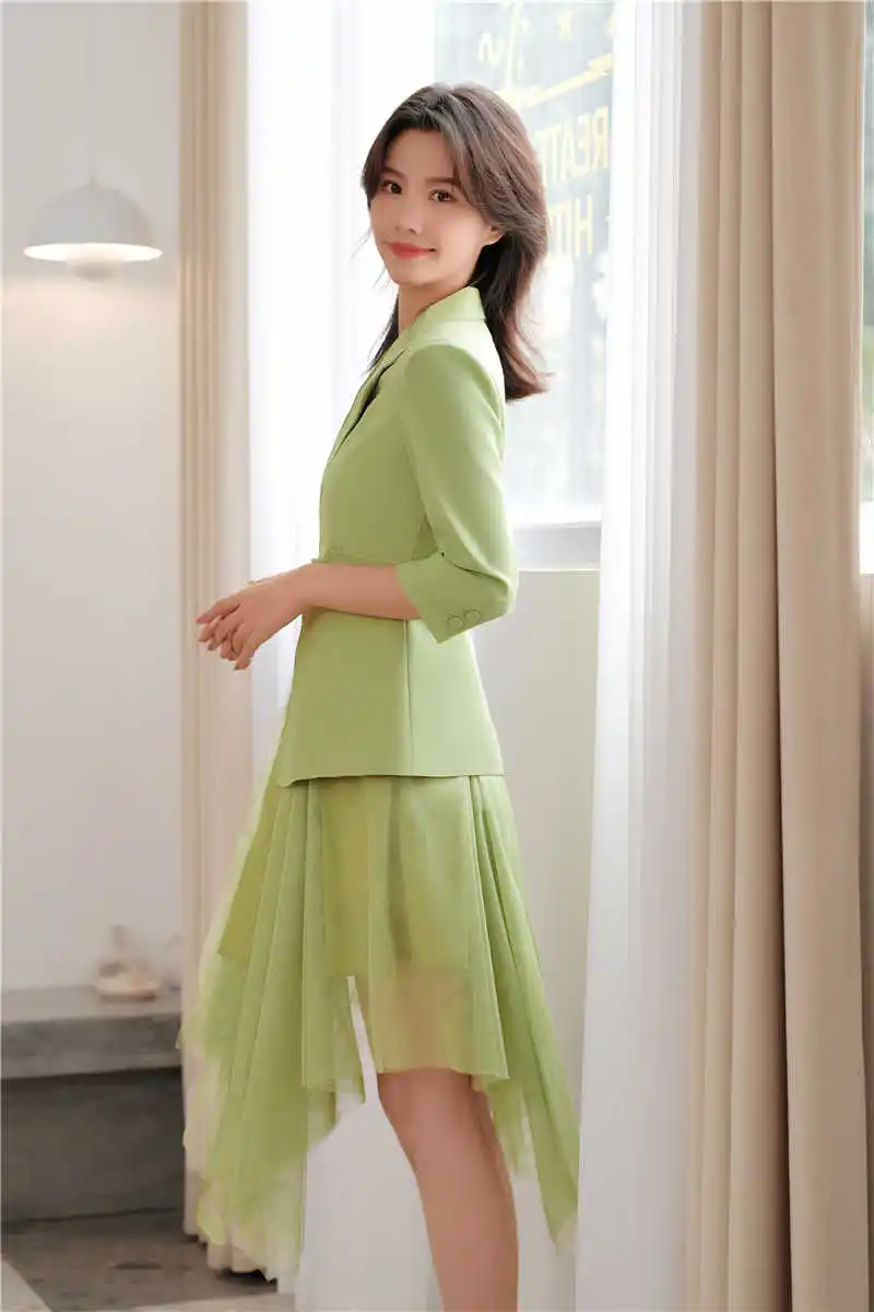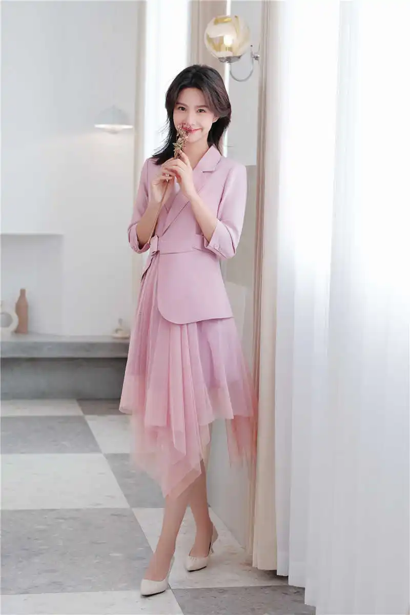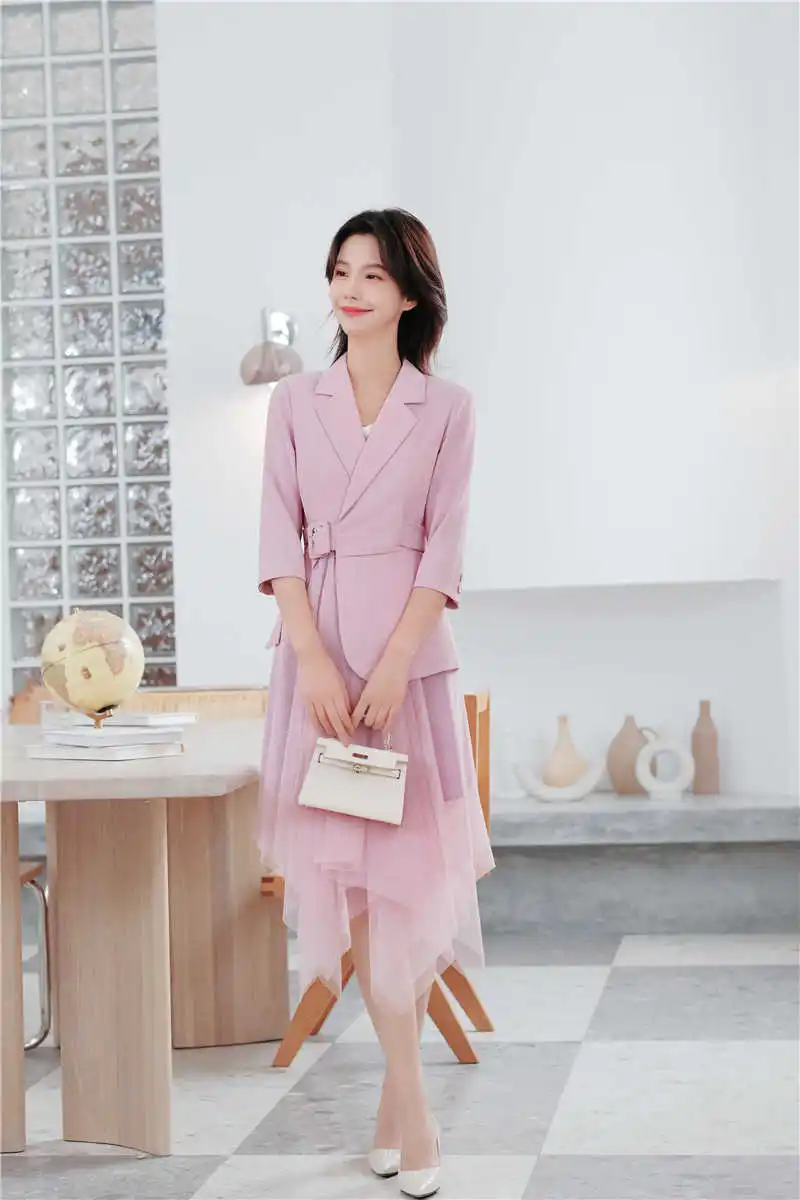 Посылка включает в себя:1 х Женский костюм для работы (Блейзер + платье)