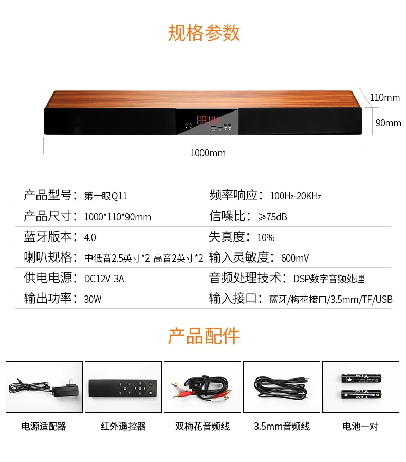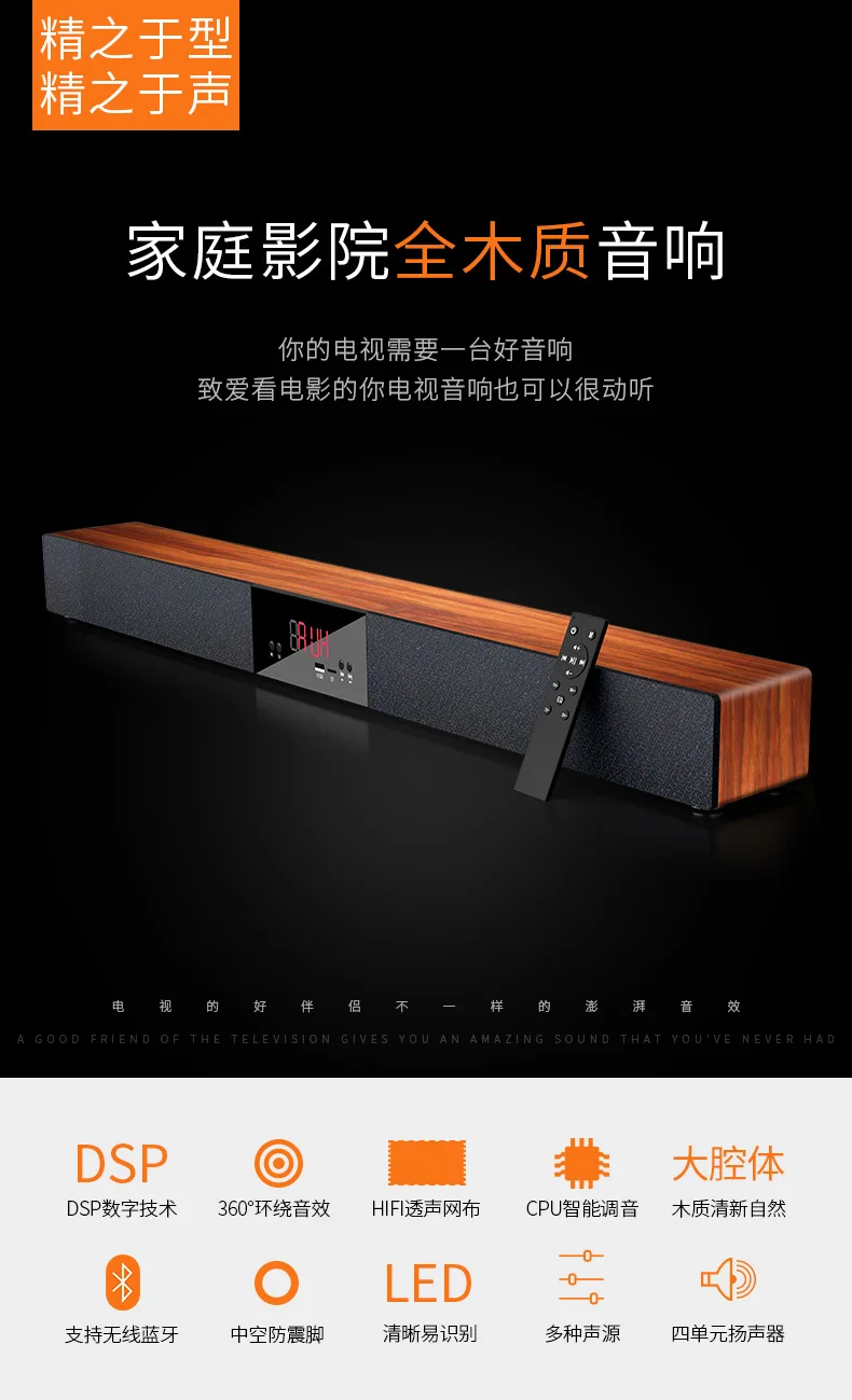 Деревянный ТВ эхо настенный домашний кинотеатр Bluetooth динамик сабвуфер HIFI стерео объемный светодиодный дисплей музыкальная система центральный звуковой бар